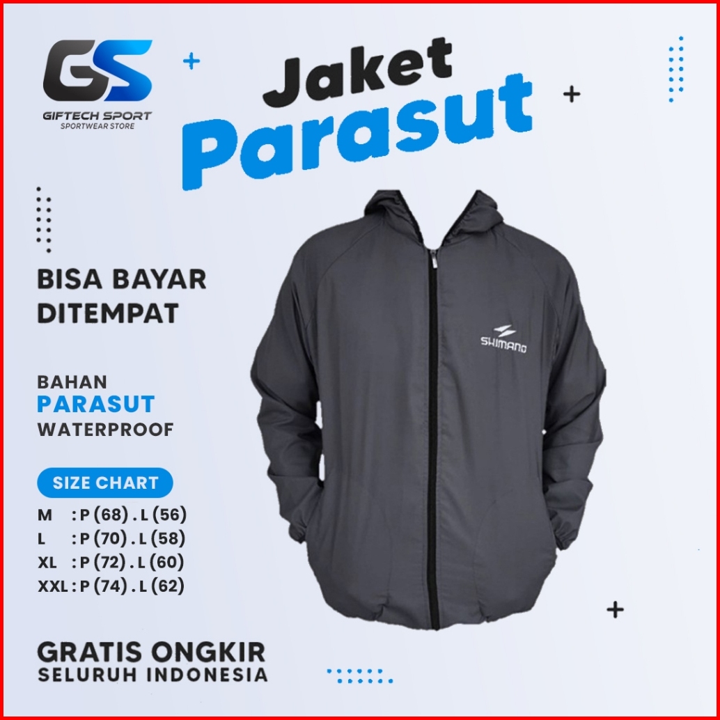 Jaket Parasut Pria Wanita Shimano Waterproof Jacket Sauna Parasit Hoodie Olahraga Running Jogging