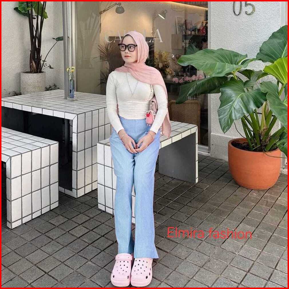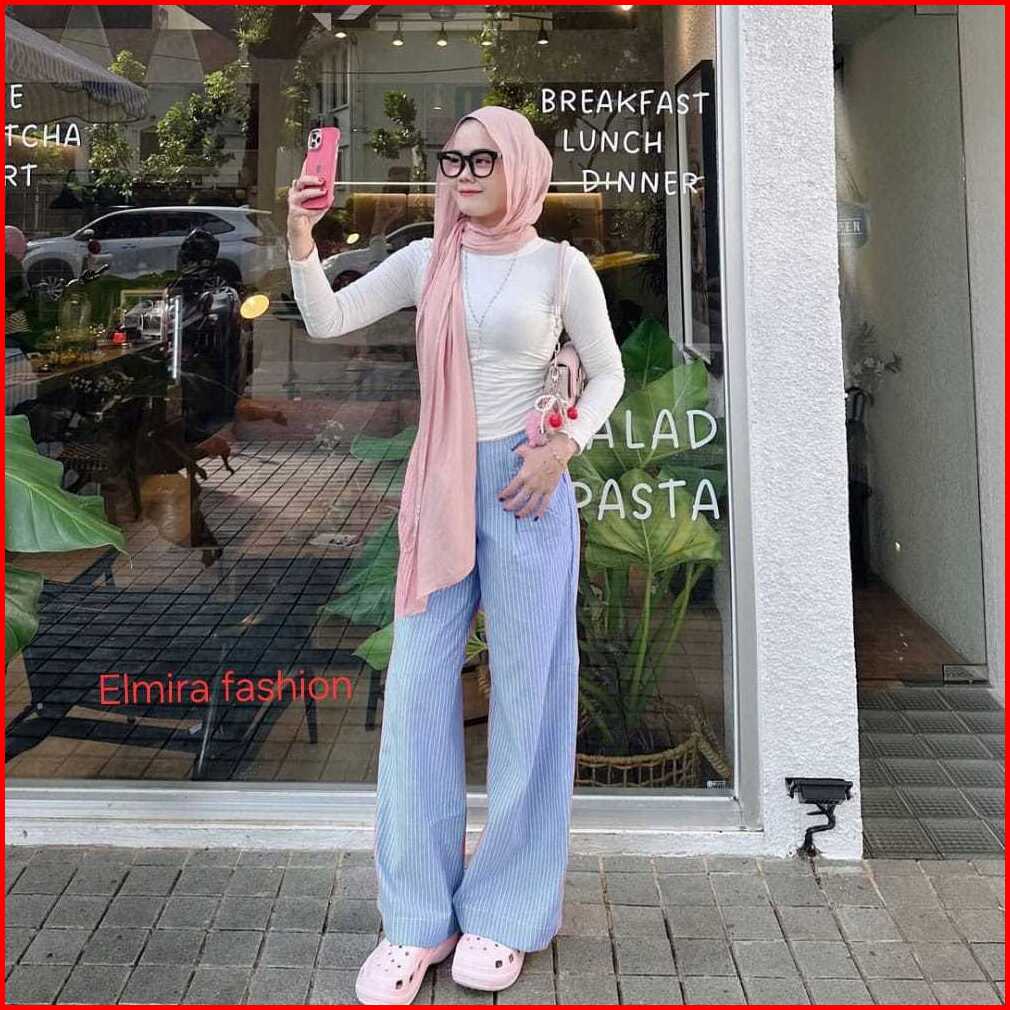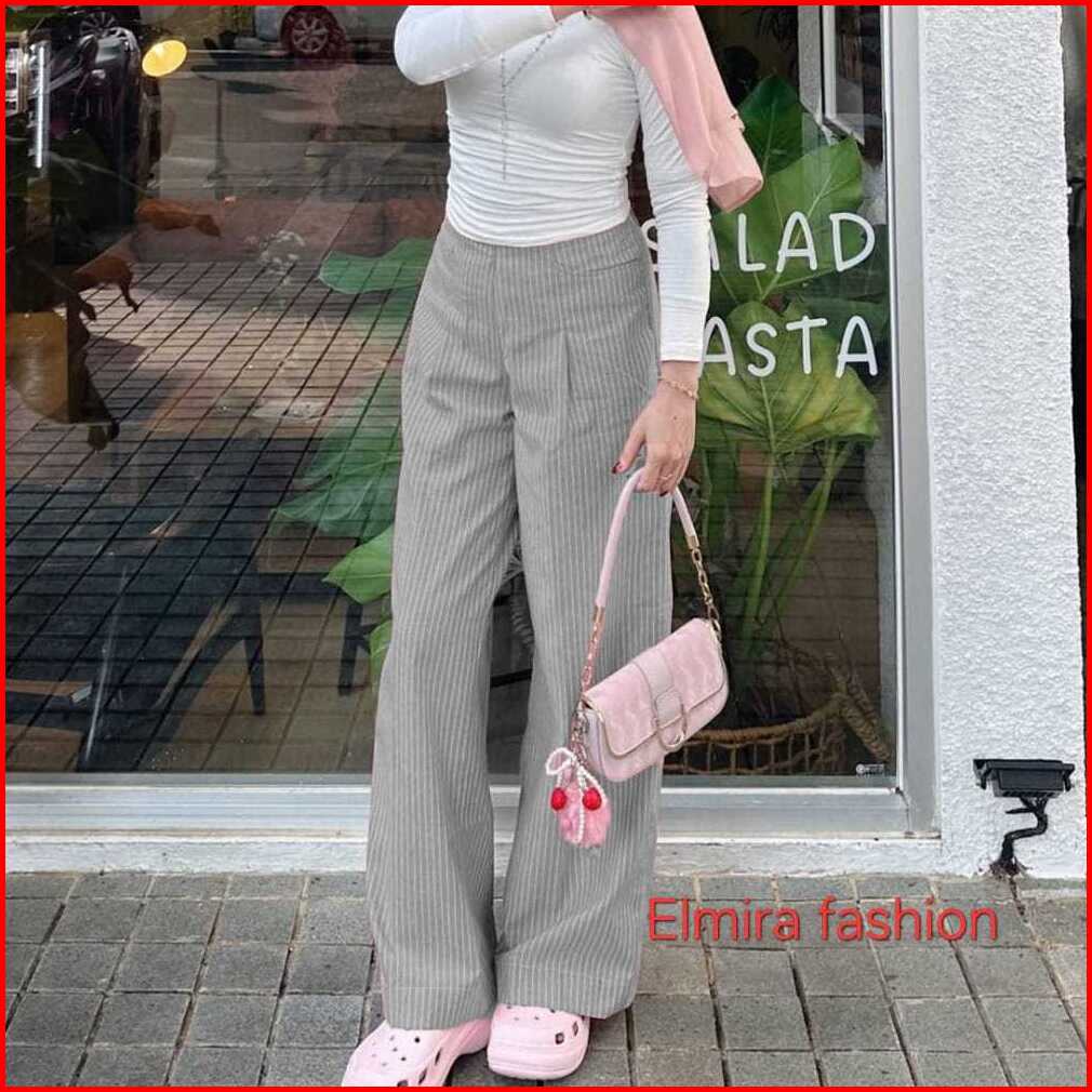 City Pants Celana Panjang Wanita Korean Style Kantor Kerja Kuliah Tidur Santai Motif Garis Kulot Pinstripe Everyday Stri