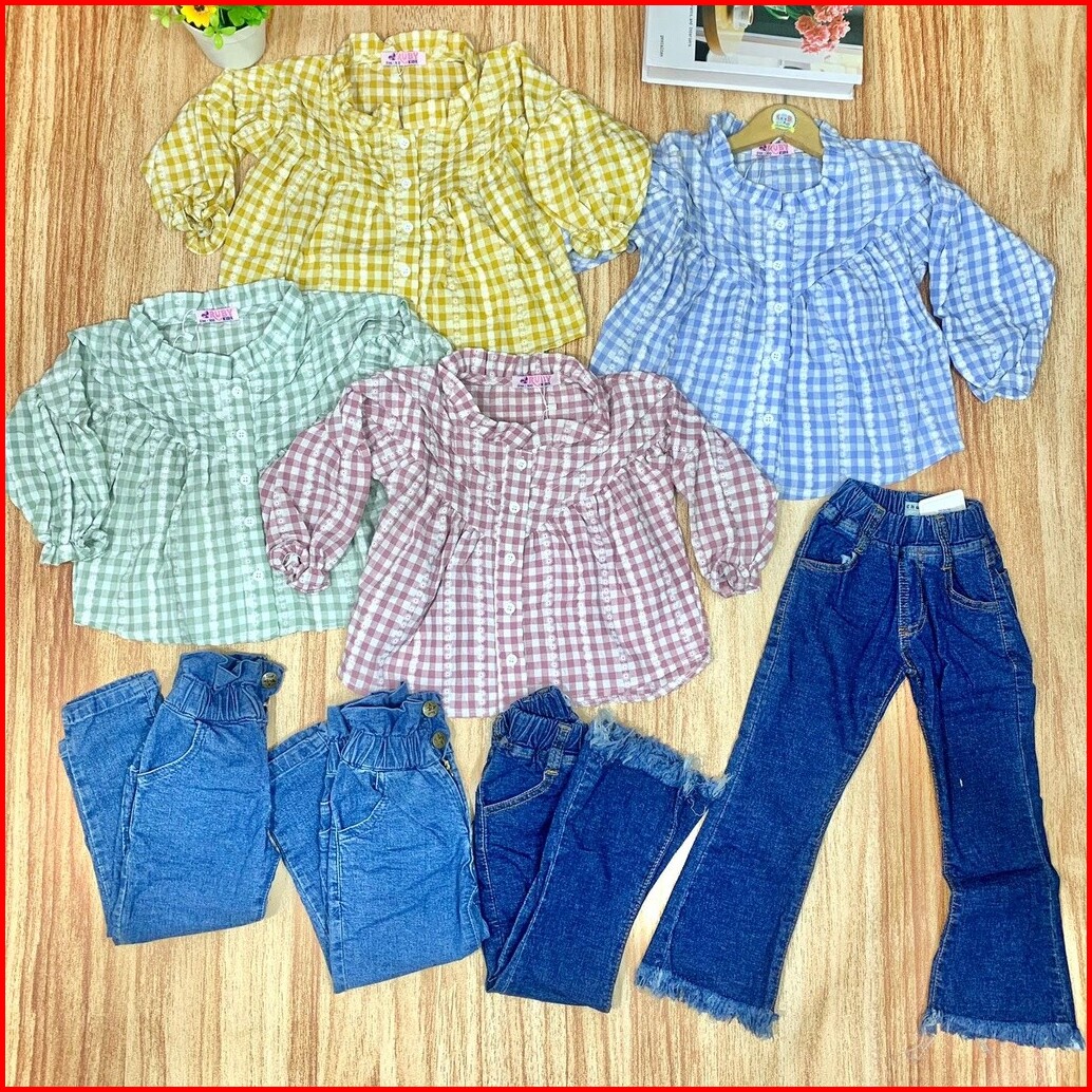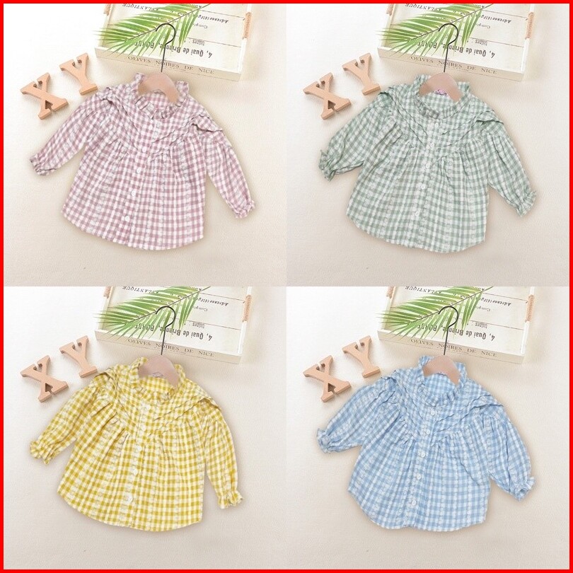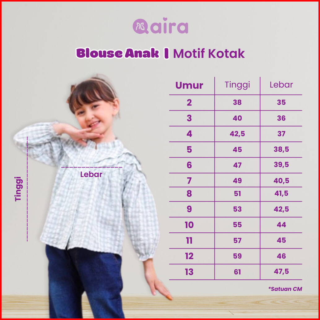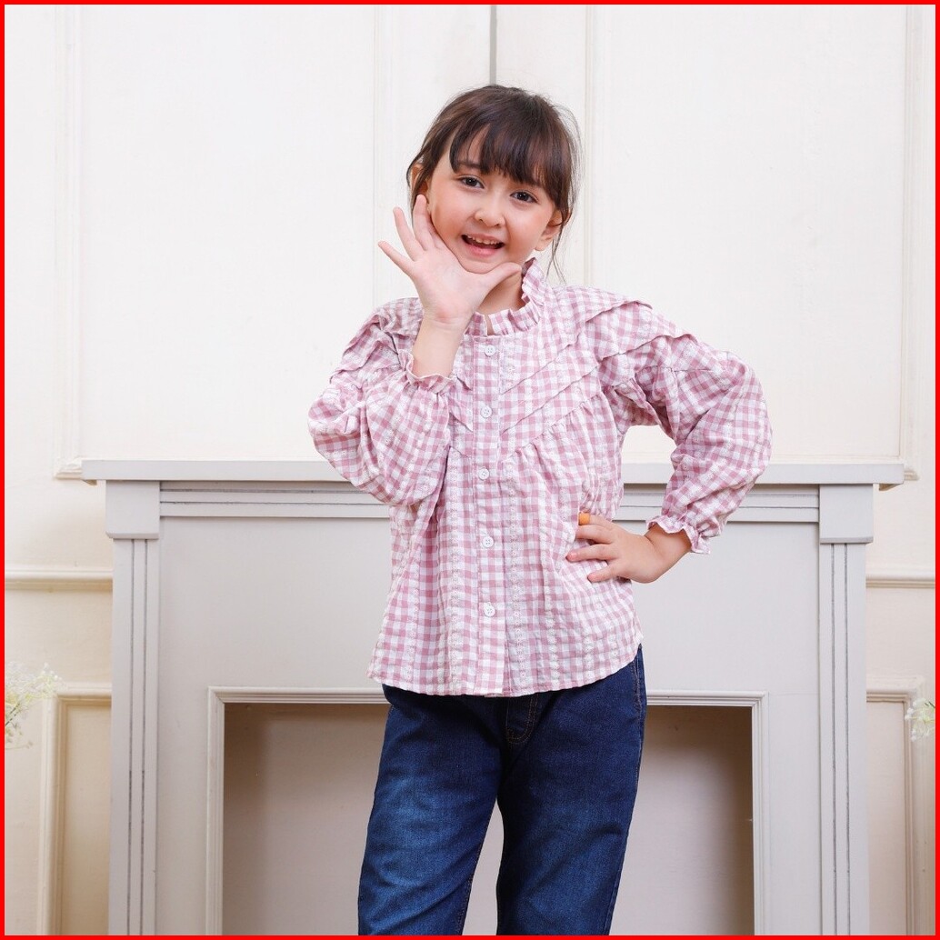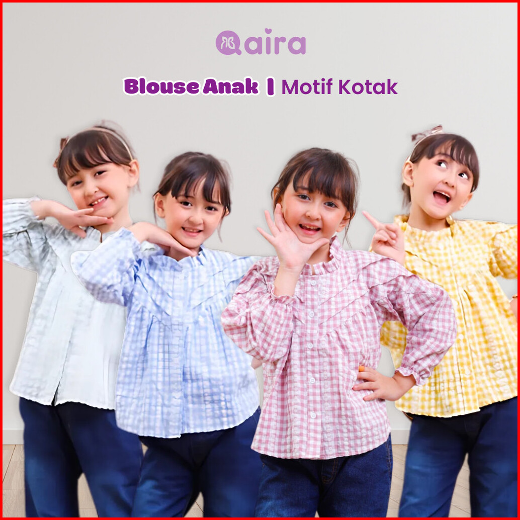 Qaira Blouse Anak Perempuan Katun Lengan Panjang Motif Kotak