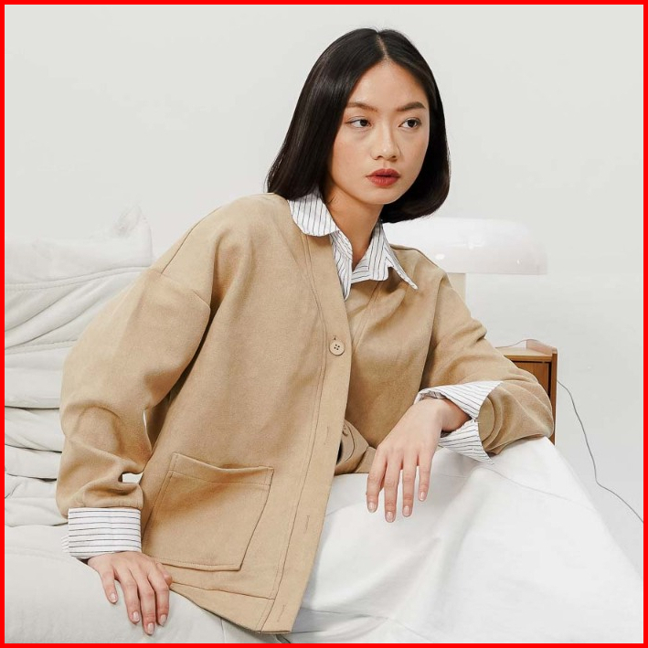This Is April Atasan Wanita Kekinian Blazer Casual Lengan Panjang Viola Cardigan Brown 60026000