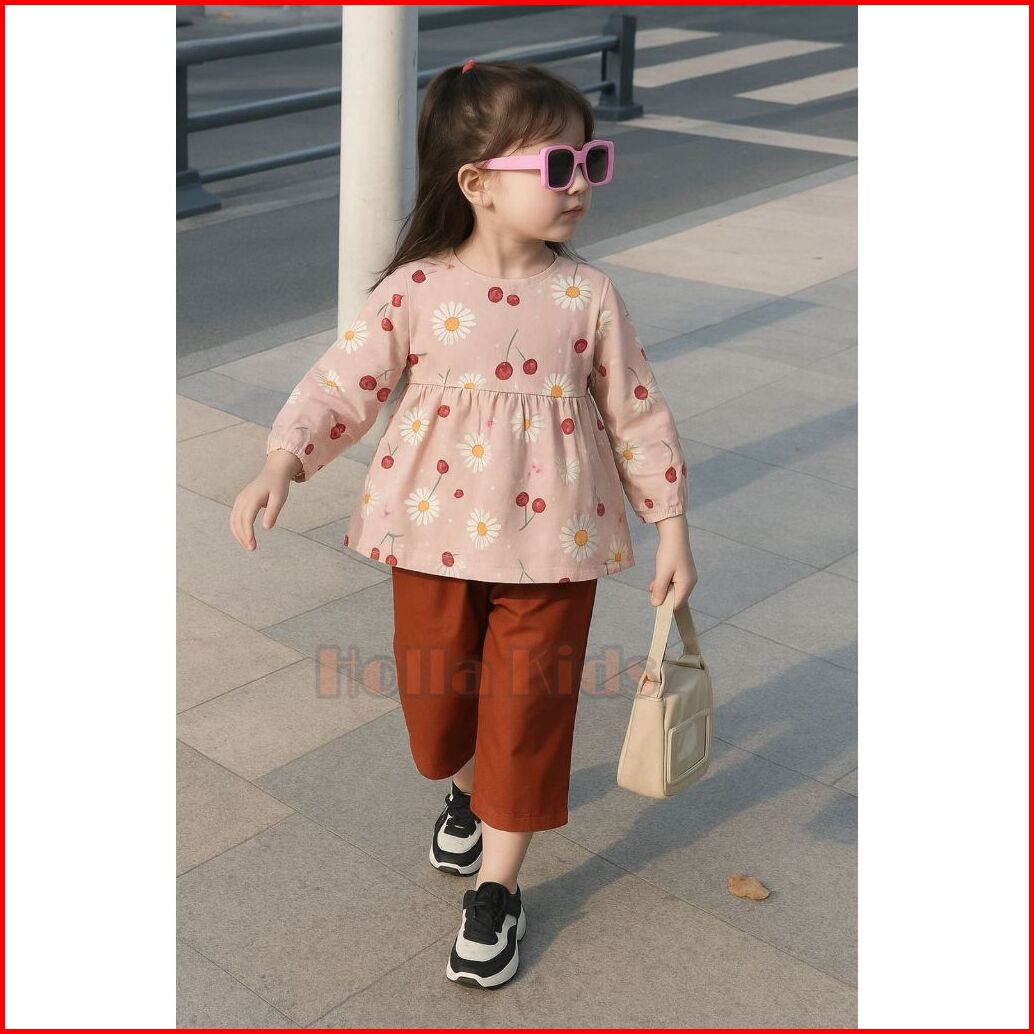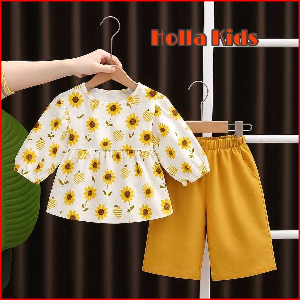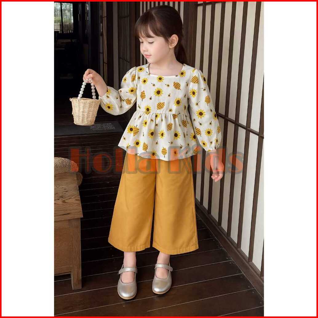 One Set Anak Perempuan Model Kekinian Motif Lebah Bahan Katun Pemakaian Usia 1-10 Tahun
