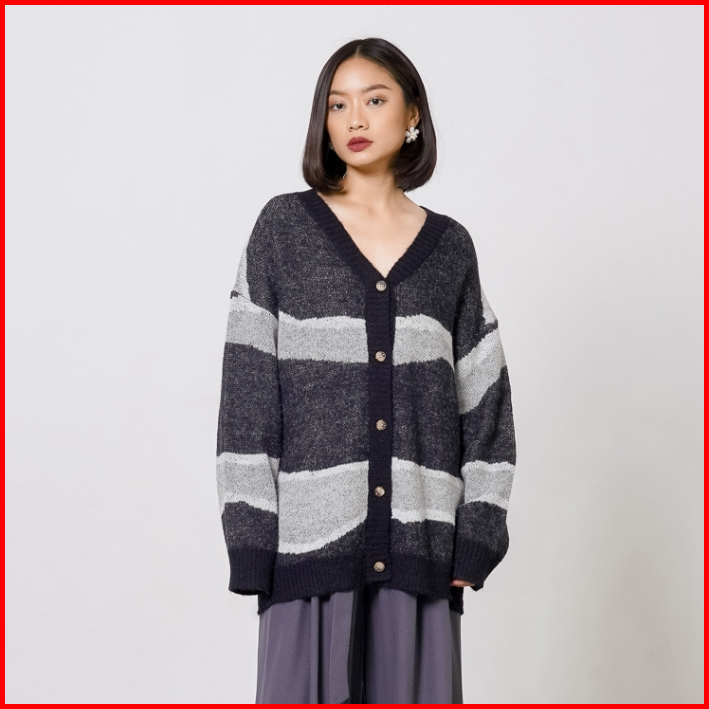 This Is April Baju Wanita Lengan Panjang Outer Rajut Oversize Kelsey Cardigan Black 60054500