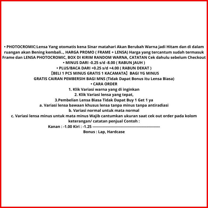 Beli 1 Pcs Minus Gratis 1 Kacamatakacamata Premiumphotocromic Minus 2120 Lensa Optic Ringan Kokoh Style Korea