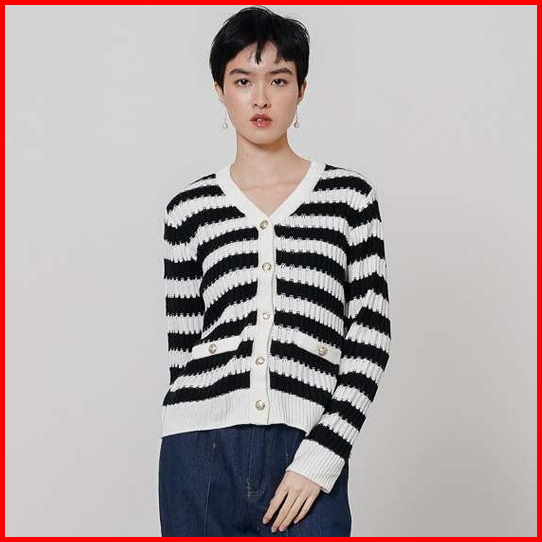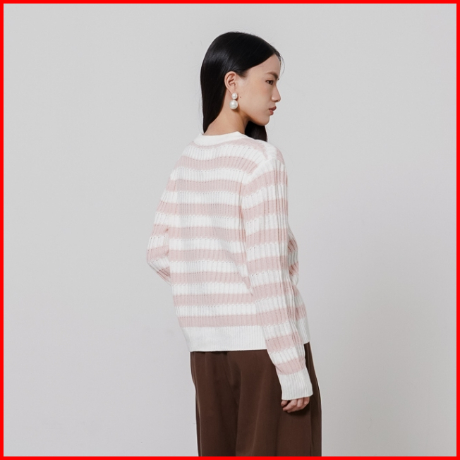 This Is April Atasan Knitwear Rajut Wanita Lengan Panjang Celina Sweater Pink Dan Black