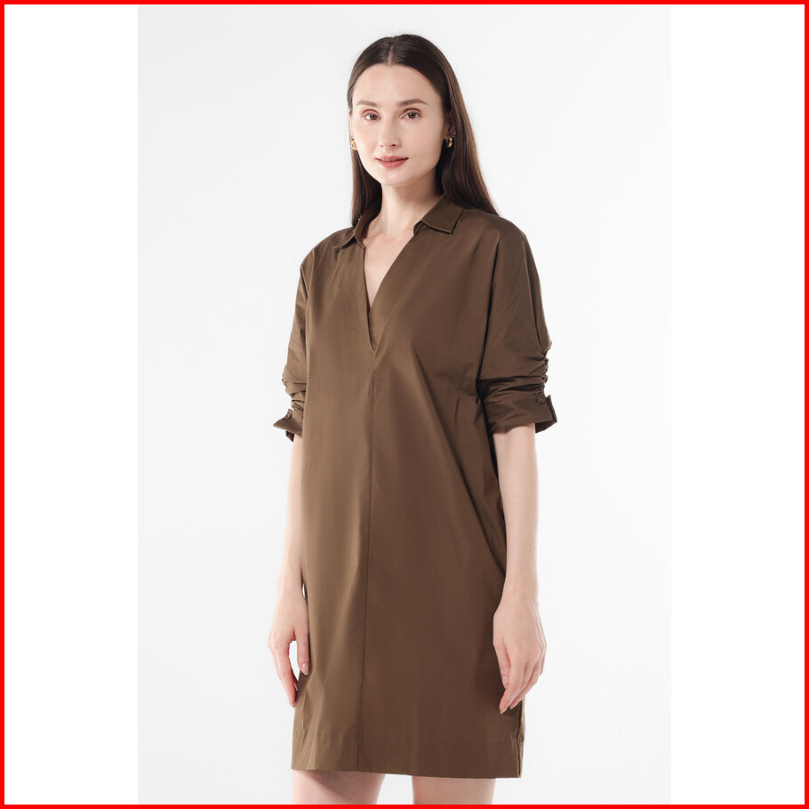 Minimal - Solva - Dress Katun V Neck Wanita - Brown