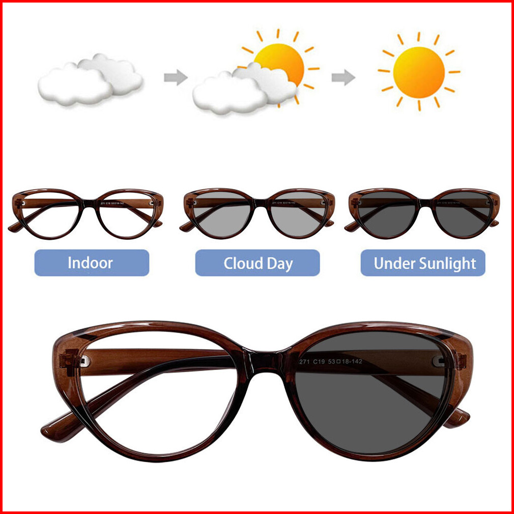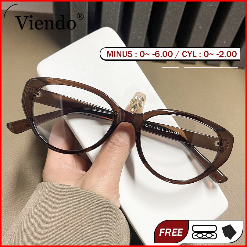 Viendo Kacamata Photocromic Minus Wanita Cat Eye Frame Silinder Anti Radiasi Blueray Kaca Mata Optik