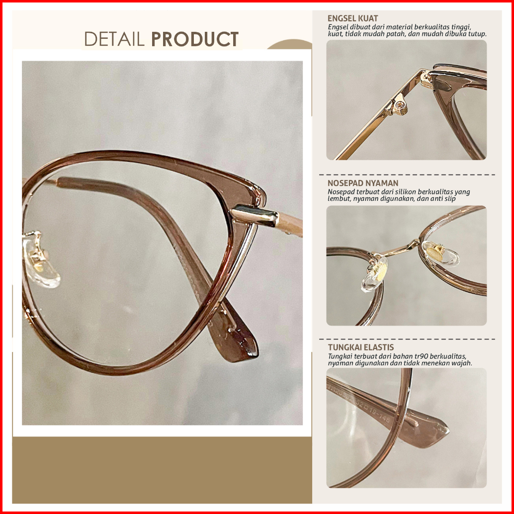 Gently Morley Kacamata Photocromic Lensa Minus Anti Radiasi Blueray Bluecromic Cat Eye Tr90 Metal Pria Wanita Fashionabl