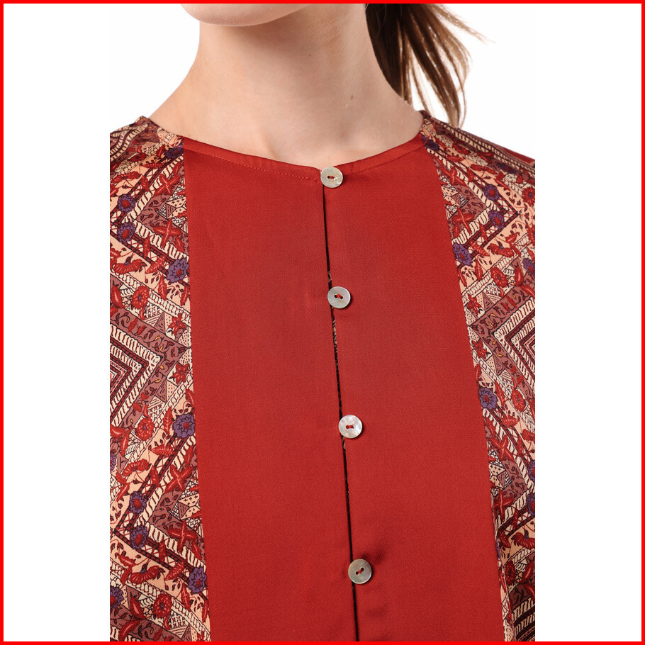 Minimal - Danastri - Geometric Floral Satin Blouse Wanita - Red