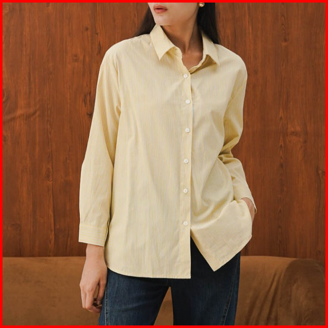 This Is April Atasan Baju Kemeja Blouse Wanita Lengan Panjang Diane Top Blue Dan Yellow