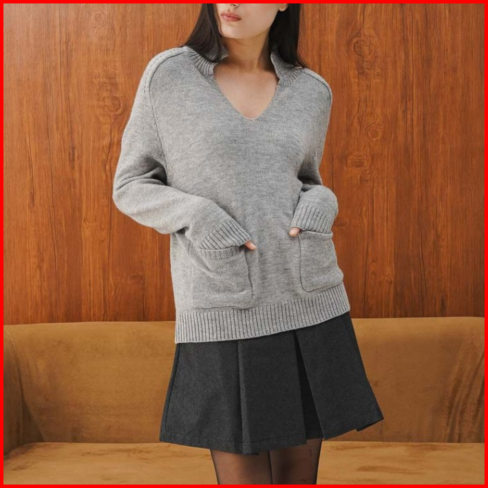 This Is April Atasan Baju Rajut Wanita Lengan Panjang Knitwear Simone Sweater Brown Dan Grey