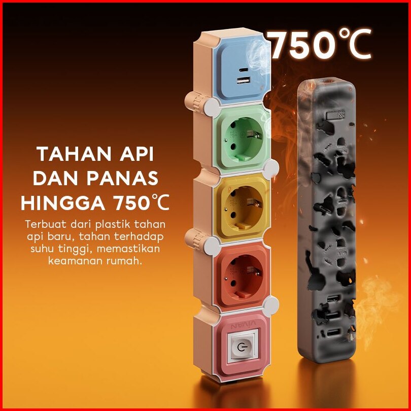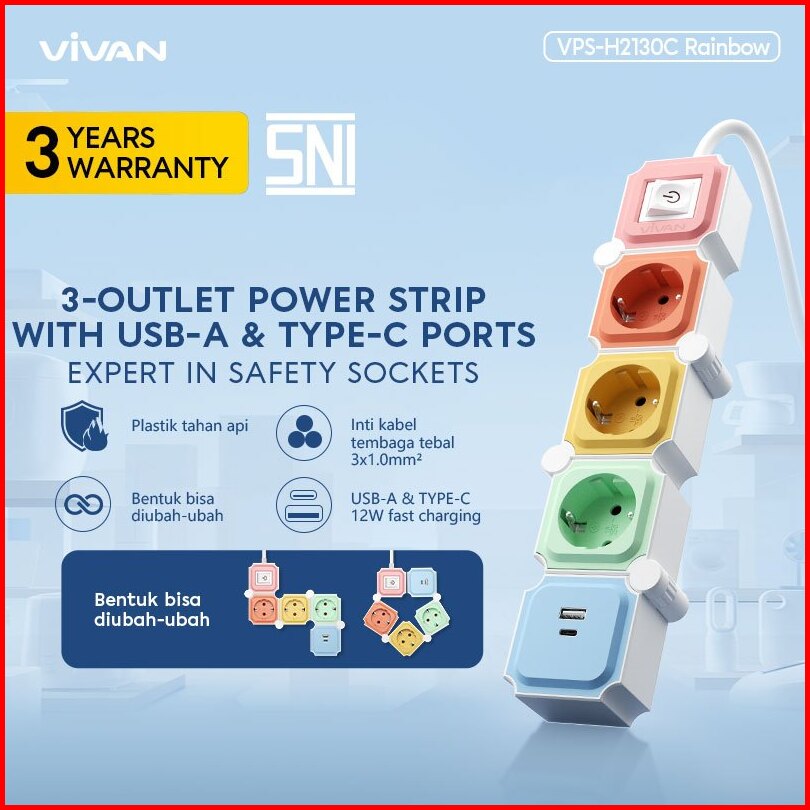 New Vivan Safety Socket Vps-h2130c Rainbow 3ac Charging Port 3m Free Deformation Garansi 36 Bulan