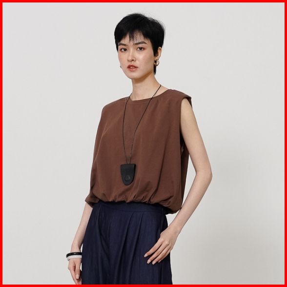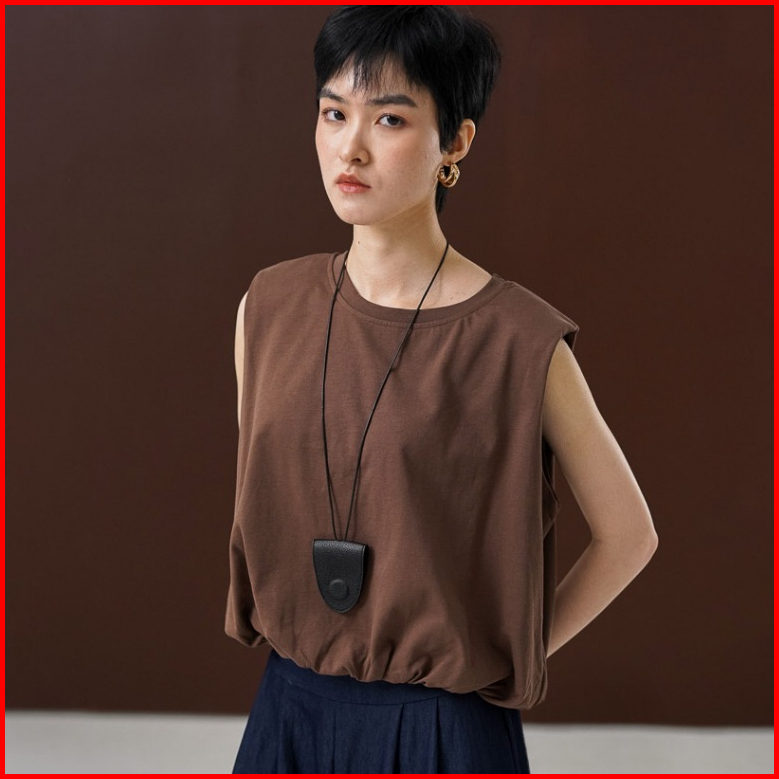 This Is April Baju Atasan Wanita Tanpa Lengan Basic Balloon Shirt Lia Top Brown 10059900