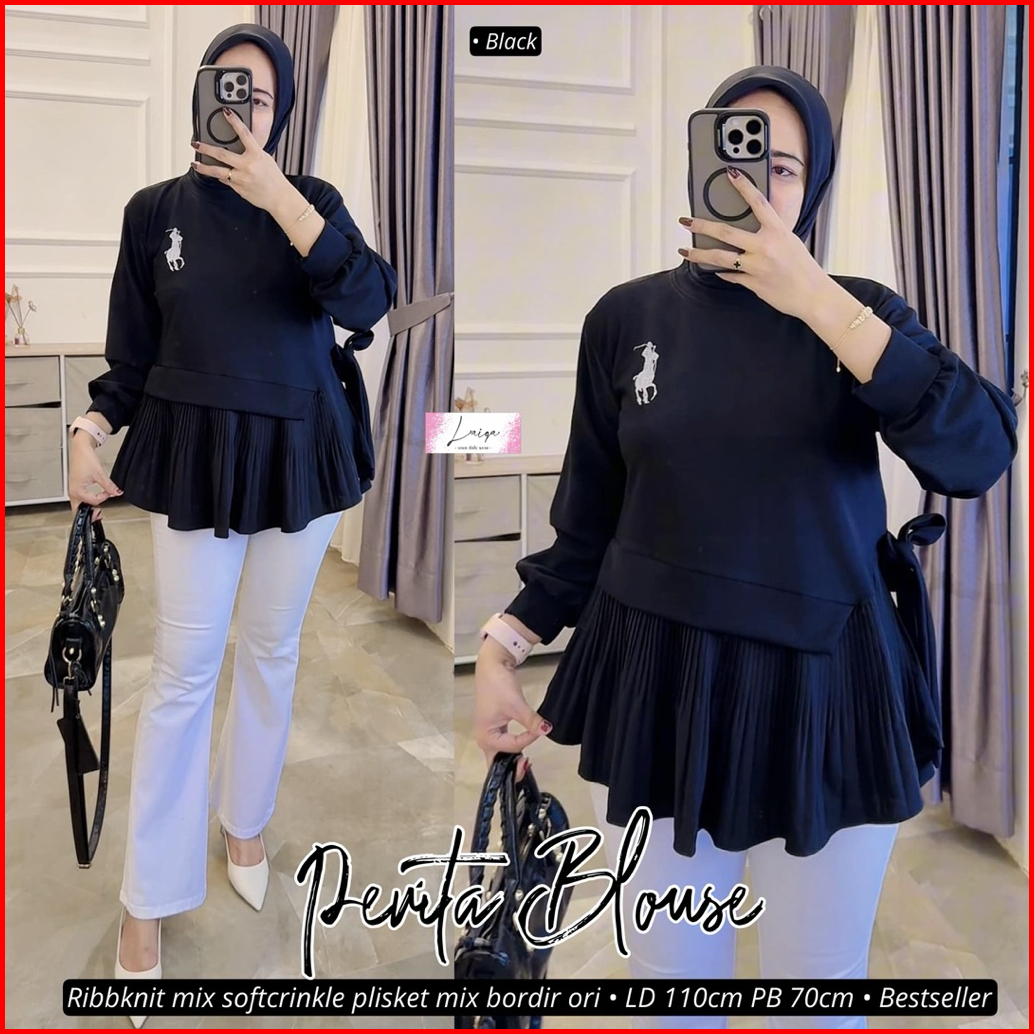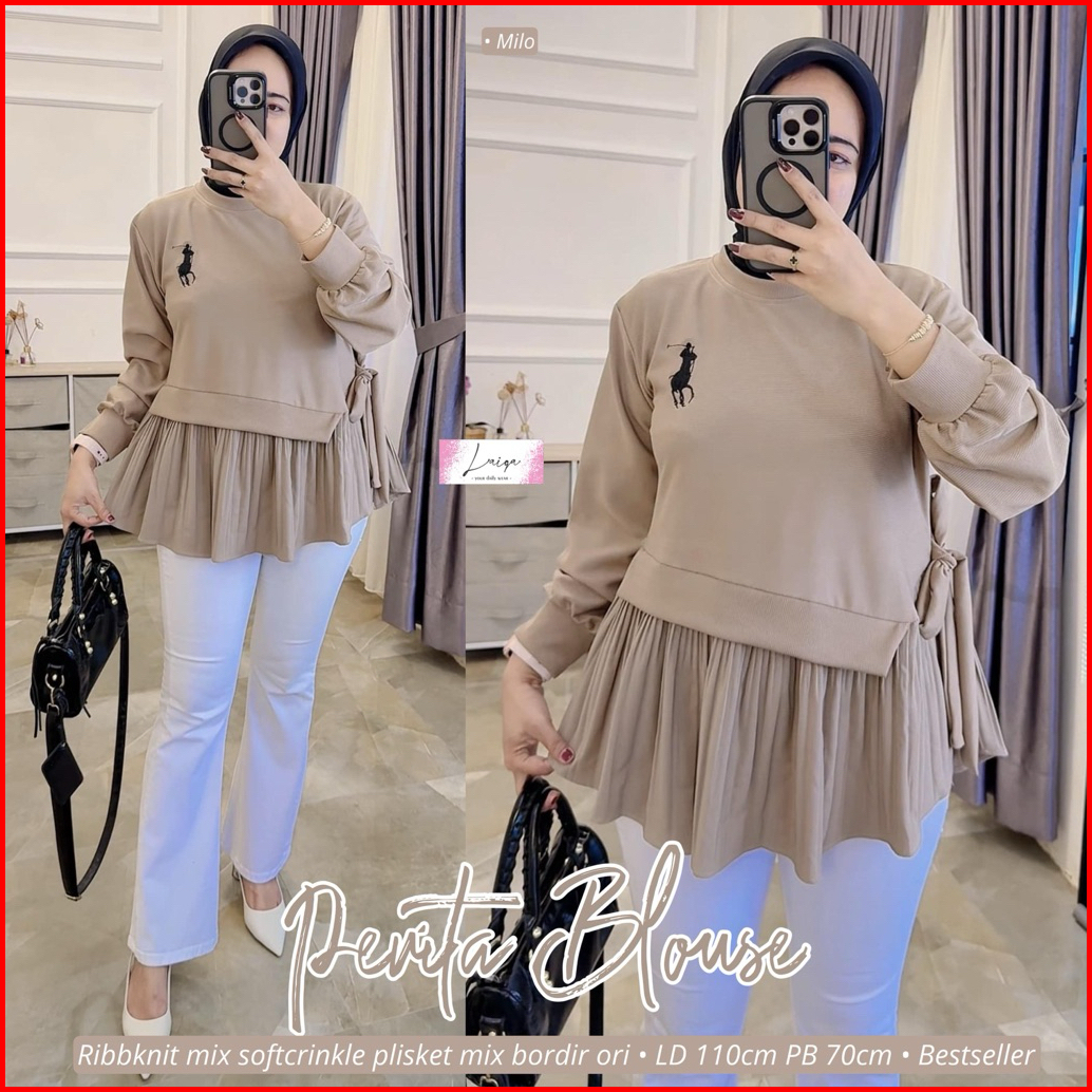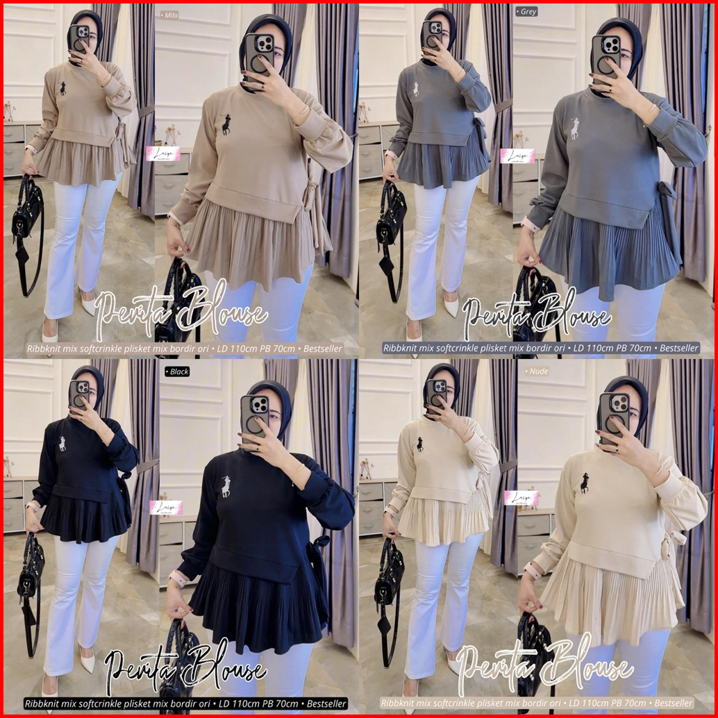Atasan Wanita Plisket Mix Bordir Pevita Blouse Bahan Adem Poll Nyaman Blouse Wanita Kekinian