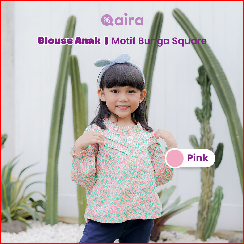 Qaira Blouse Anak Perempuan Motif Bunga Square Korean Style