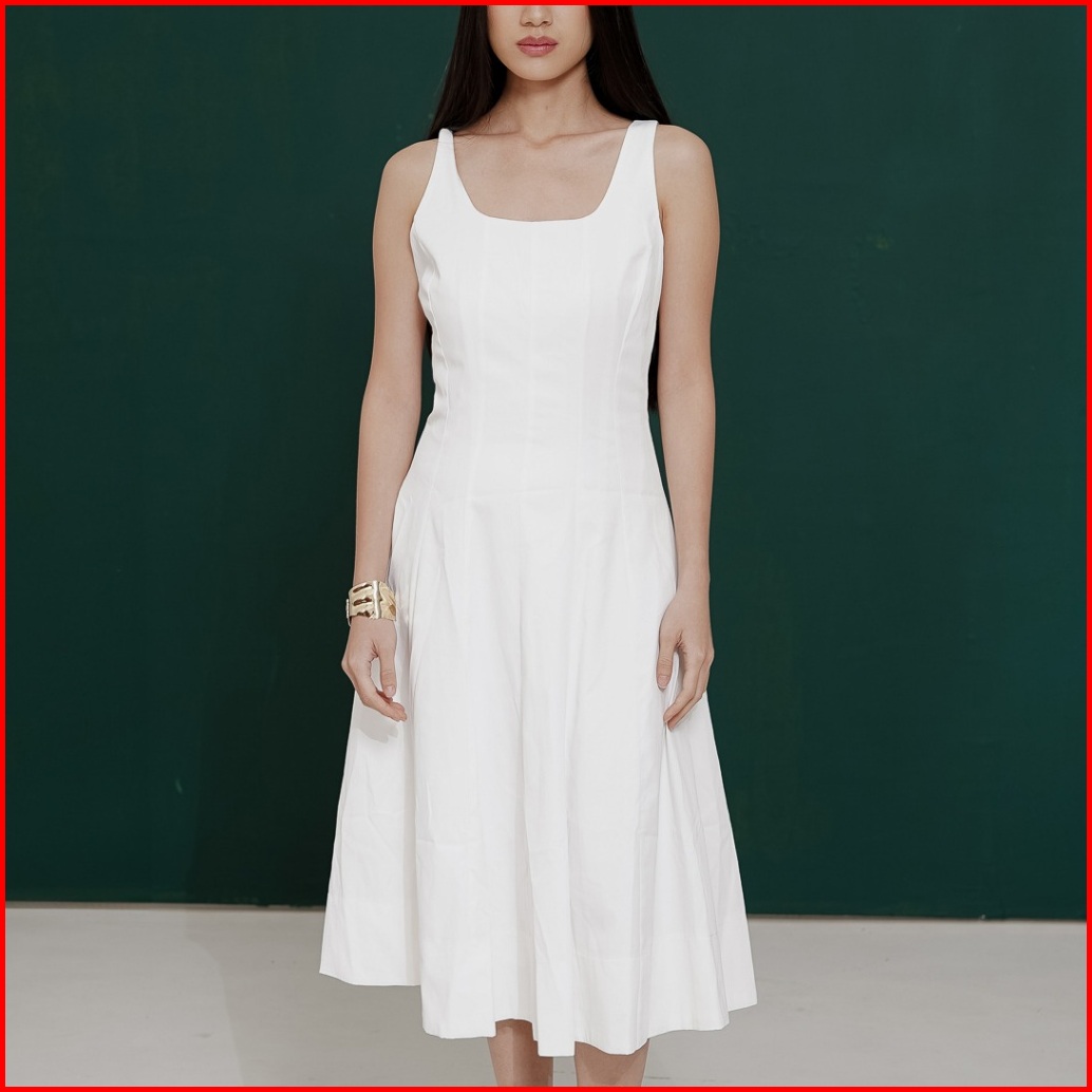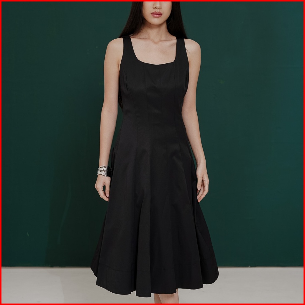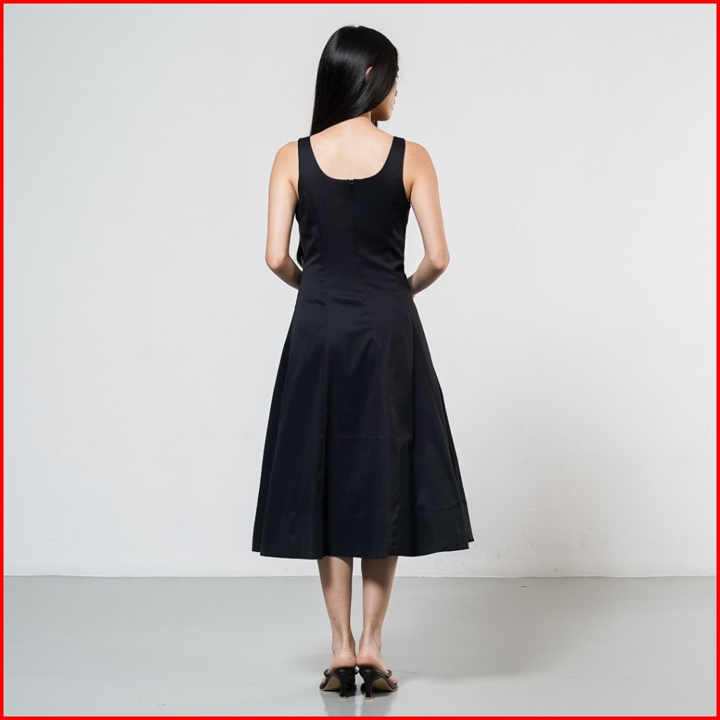 This Is April Gaun Midi Wanita Kekinian Tanpa Lengan Jennet Dress Black Dan White
