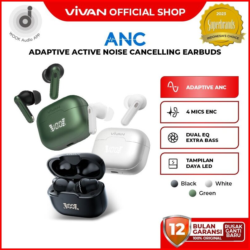 New Vivan Tws Adaptive Anc Enc Infinity Gt6 Dual Eq Bass Gaming Bt 5.4 Low Latency Garansi 12bulan
