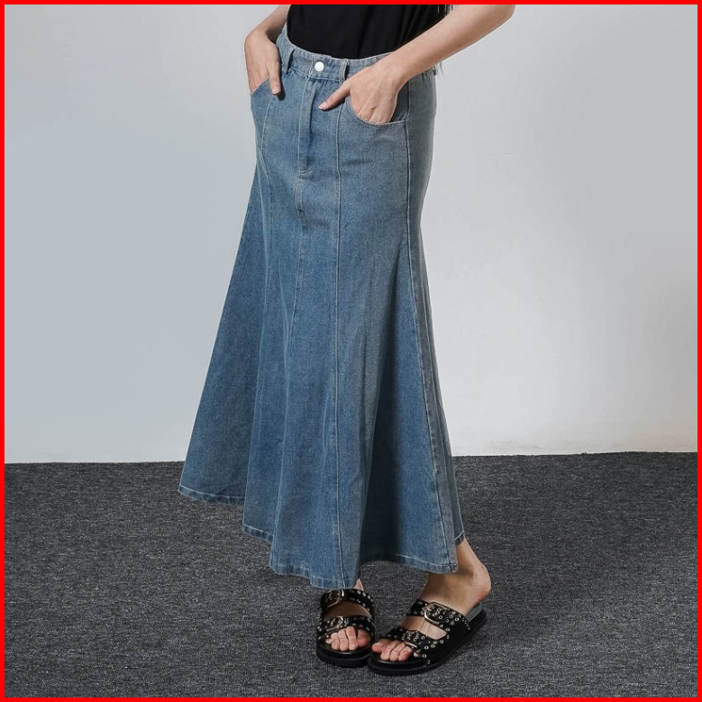 This Is April Rok Maxi Jeans Wanita Terbaru A-line Camden Skirt Denim