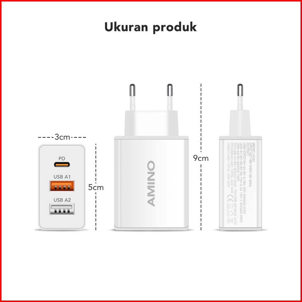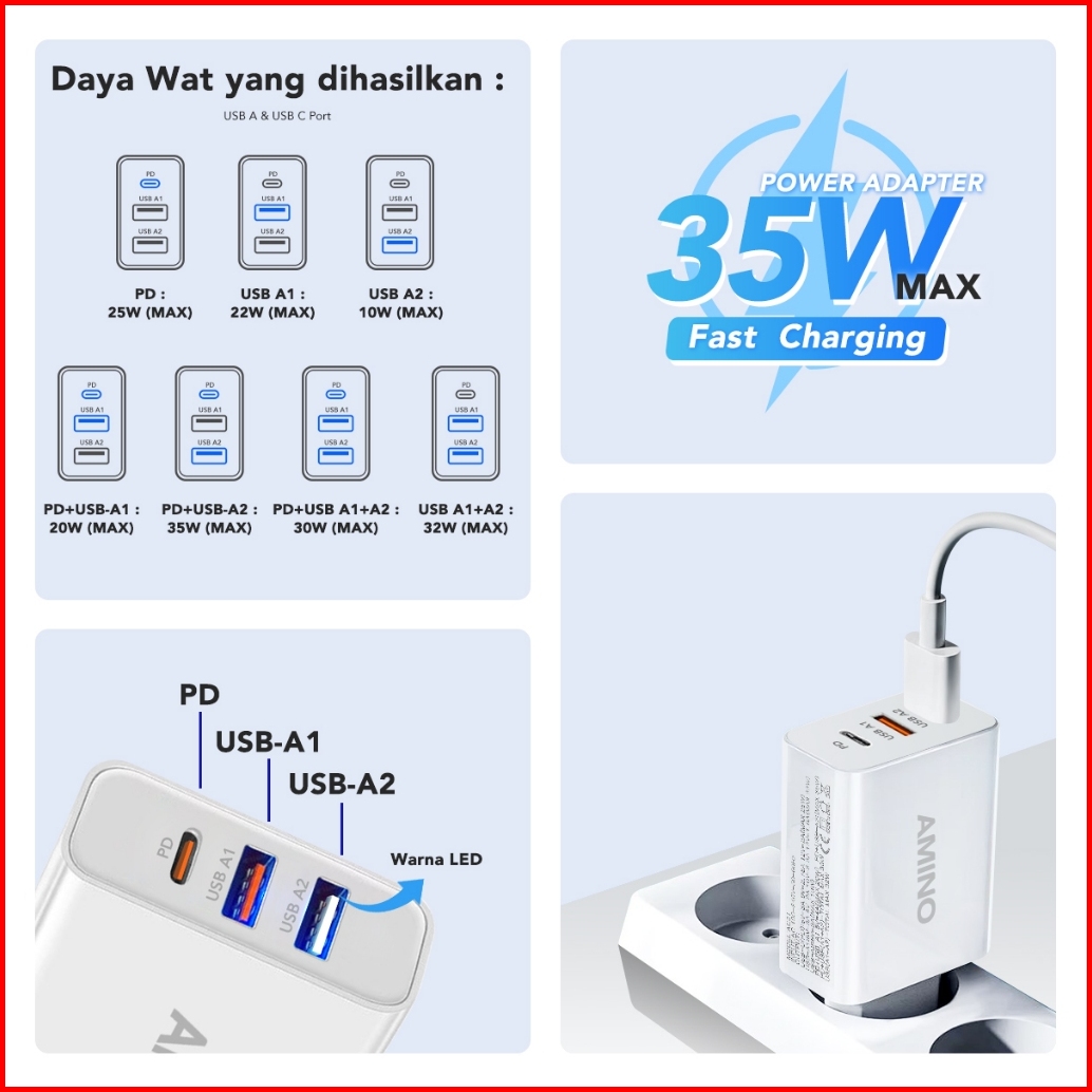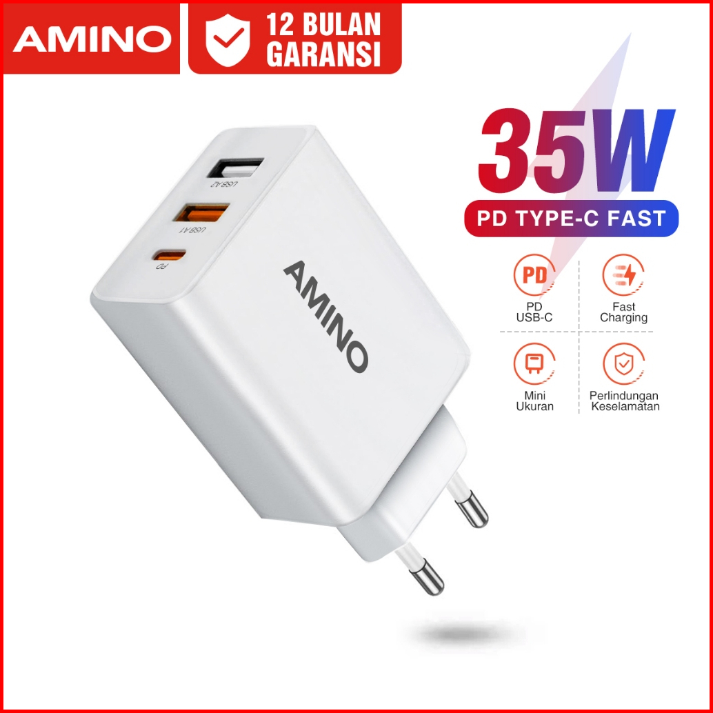 Amino 35w Pd Type-c Kepala Charger Quick Charging Usb C Dual Usb Fast Charge Travel Adaptor Quick 3.0 R Untuk Samsung Xi