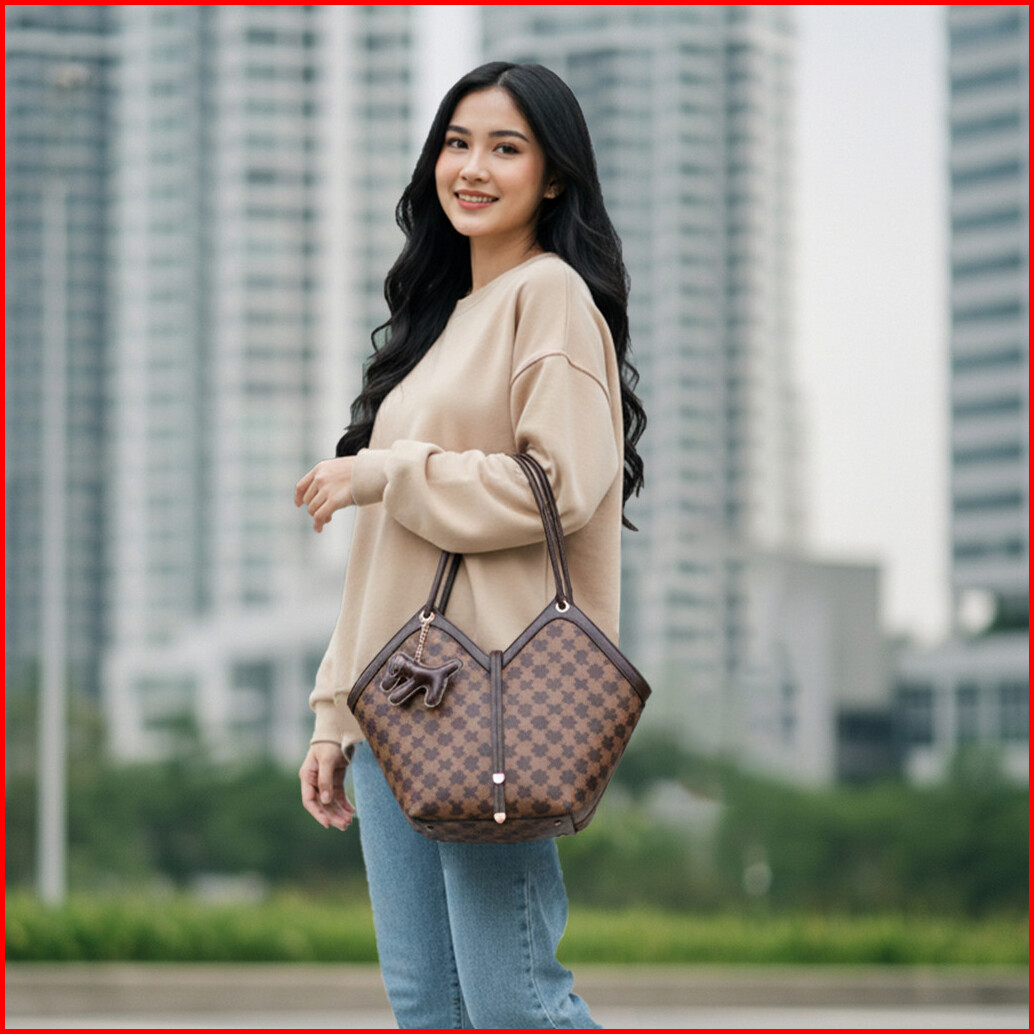 Selly Bag - Moco Muda Fashion Tas Totebag Kuliah Wanita Import Elegan Kerja Segitiga Hati Hadiah Untuk Pacar 1610