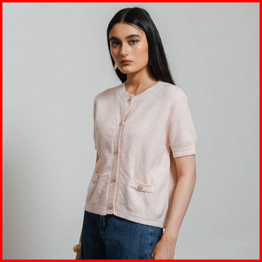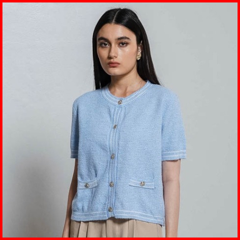 This Is April Baju Atasan Knit Outer Wanita Terbaru Lengan Pendek Claudia Outer Pink And Blue