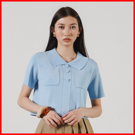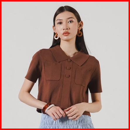 This Is April Baju Atasan Blouse Crop Wanita Lengan Pendek Chiara Top Brown Dan Blue