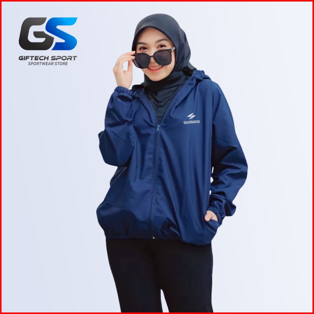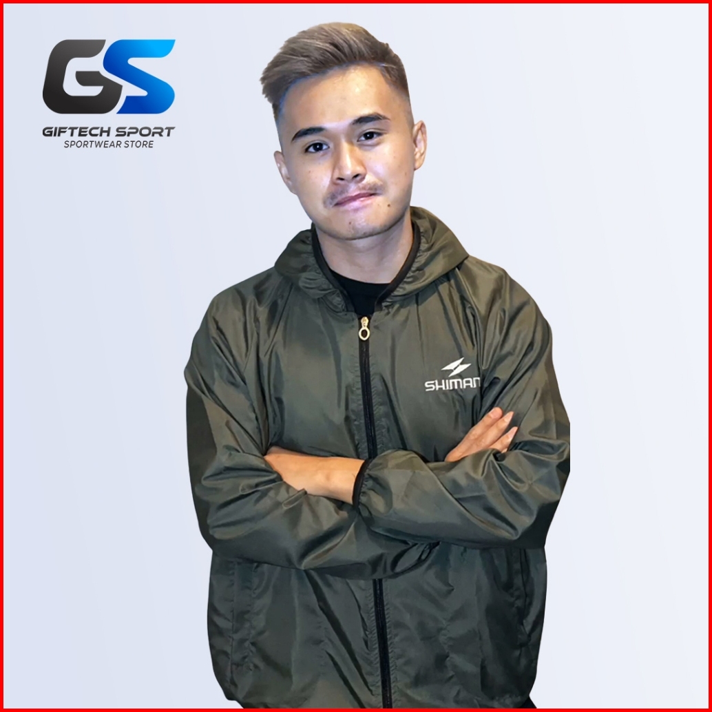 Jaket Parasut Shimano Waterproof Jacket Sauna Parasit Hoodie Olahraga Running Jogging Pria Wanita