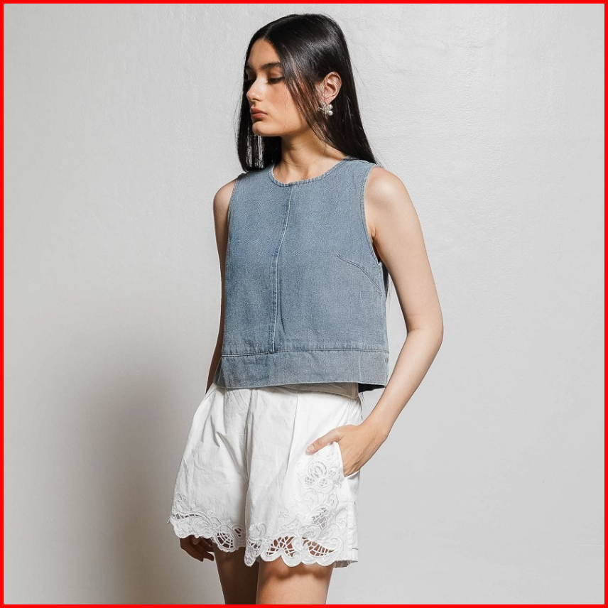 This Is April Atasan Vest Wanita Jeans Crop Kekinian Emilia Top Denim 100490