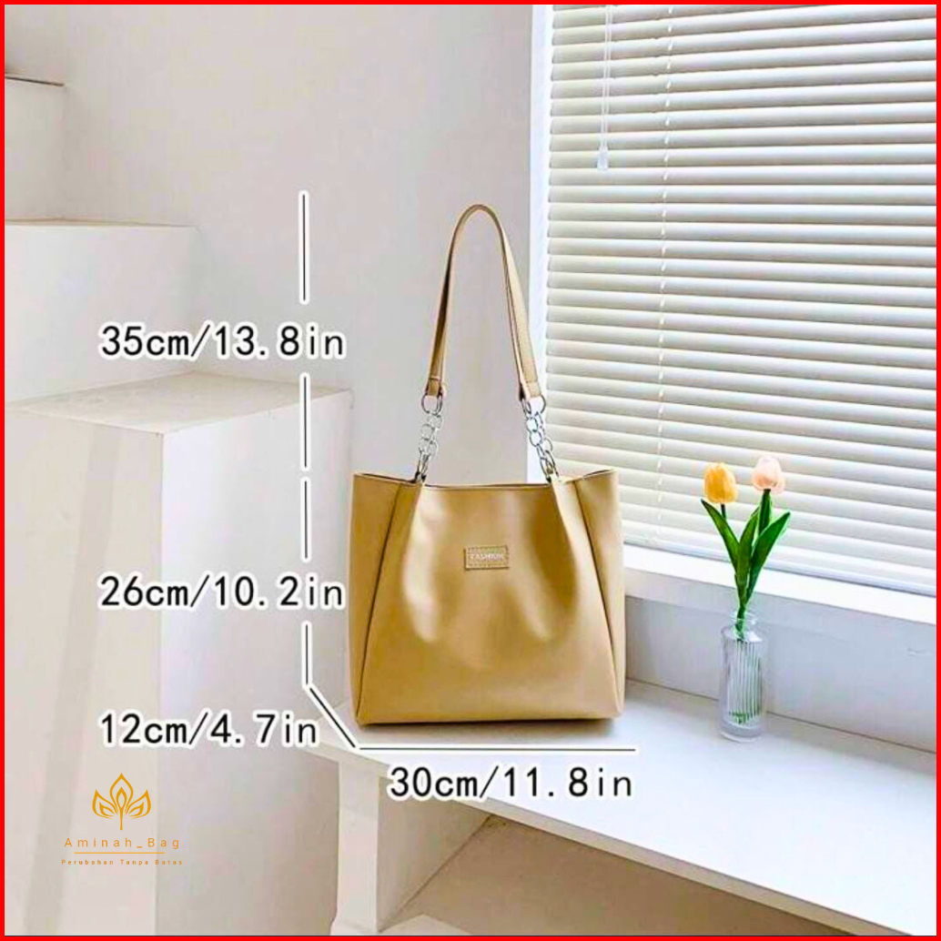 Aminah Tas Totebag Tas Wanita Kapasitas Besar Pu Kulit Polos Sederhana Tas Bisnis Kantor