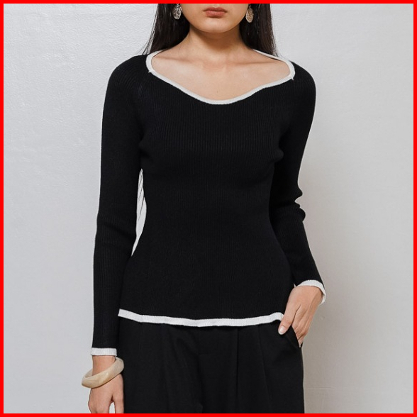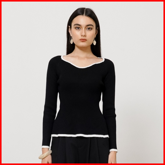 This Is April Baju Atasan Knit Top Wanita Lengan Panjang Kekinian Cleona Top Black 10057300