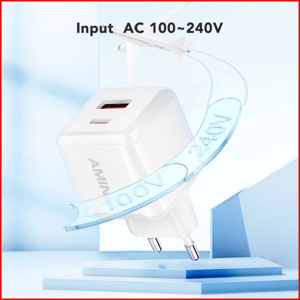 Amino Wall Charger Adaptor 25w Pd Usb Type C Fast Charging 3.0 Dual Output Kepala Charger Quick