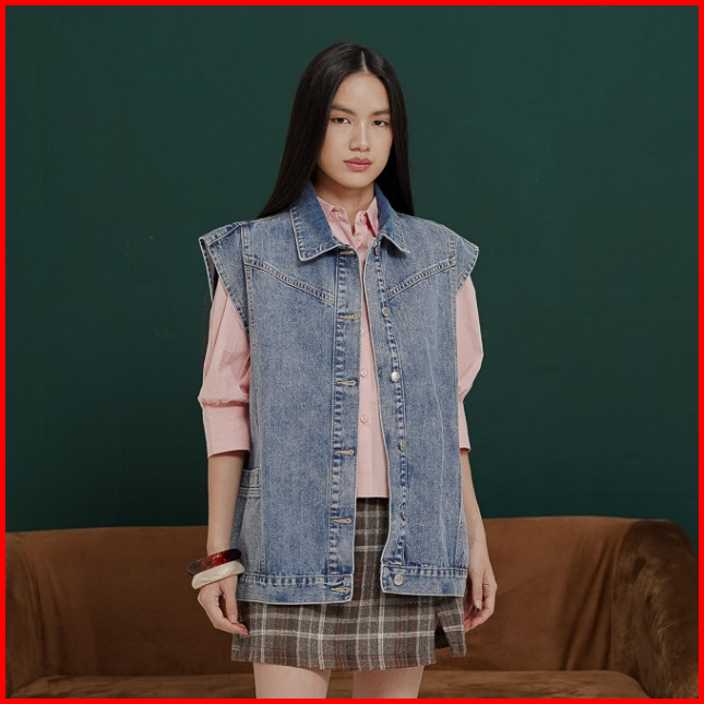 This Is April Atasan Wanita Kekinian Outer Comfy Tanpa Lengan Deloula Vest Denim 10113600