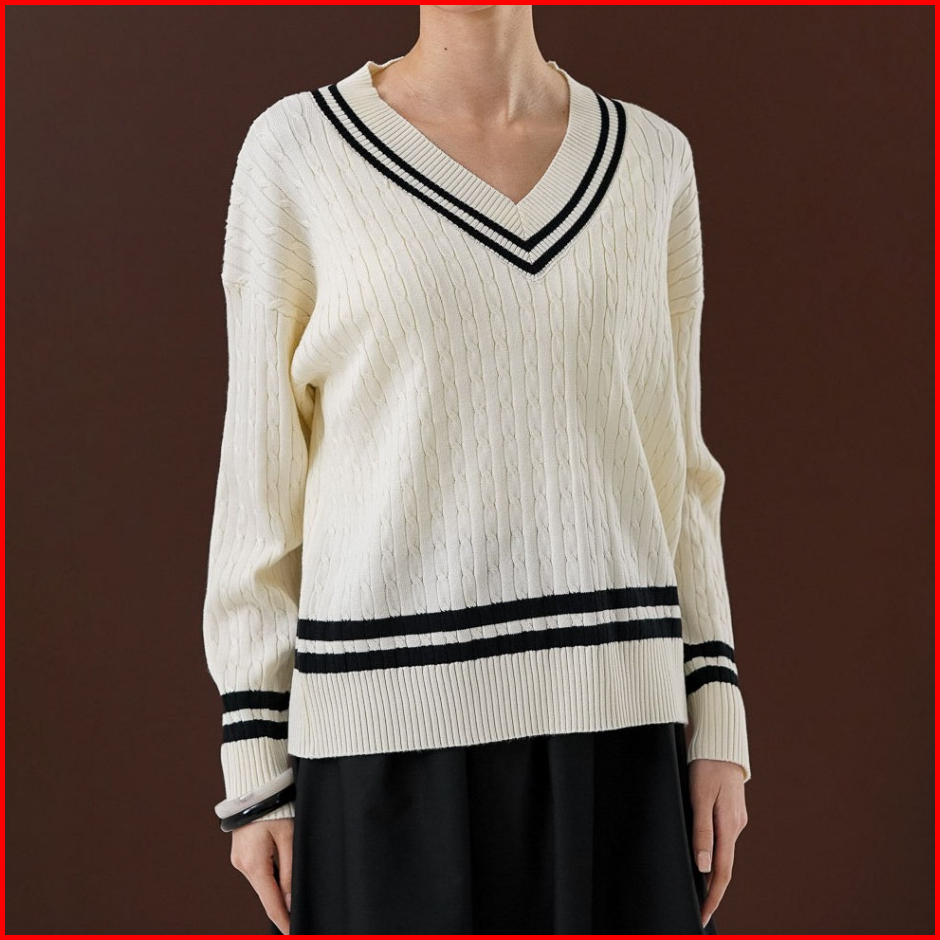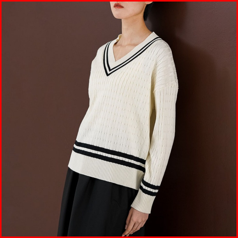 This Is April Baju Atasan Wanita Lengan Panjang Outer Kekinian Carlo Sweater Ivory Dan Navy