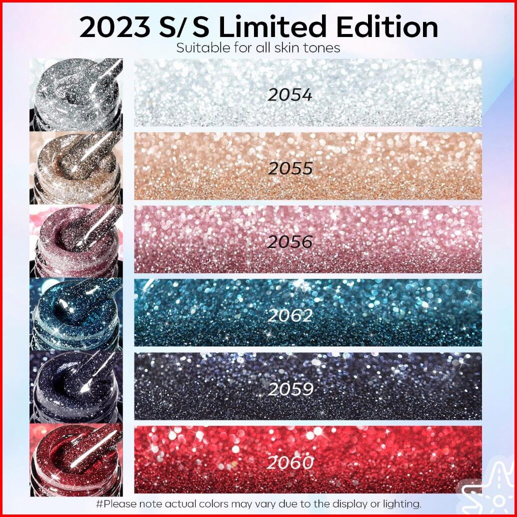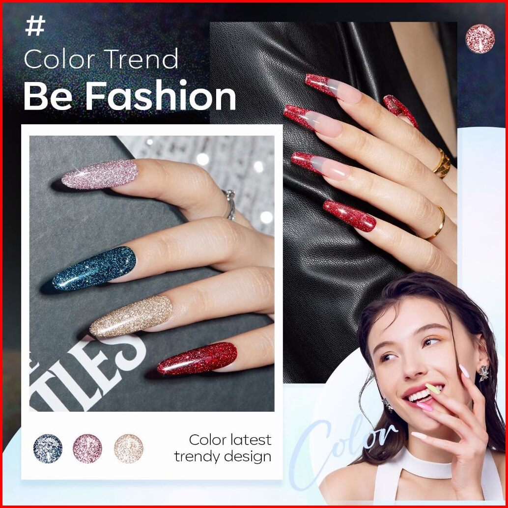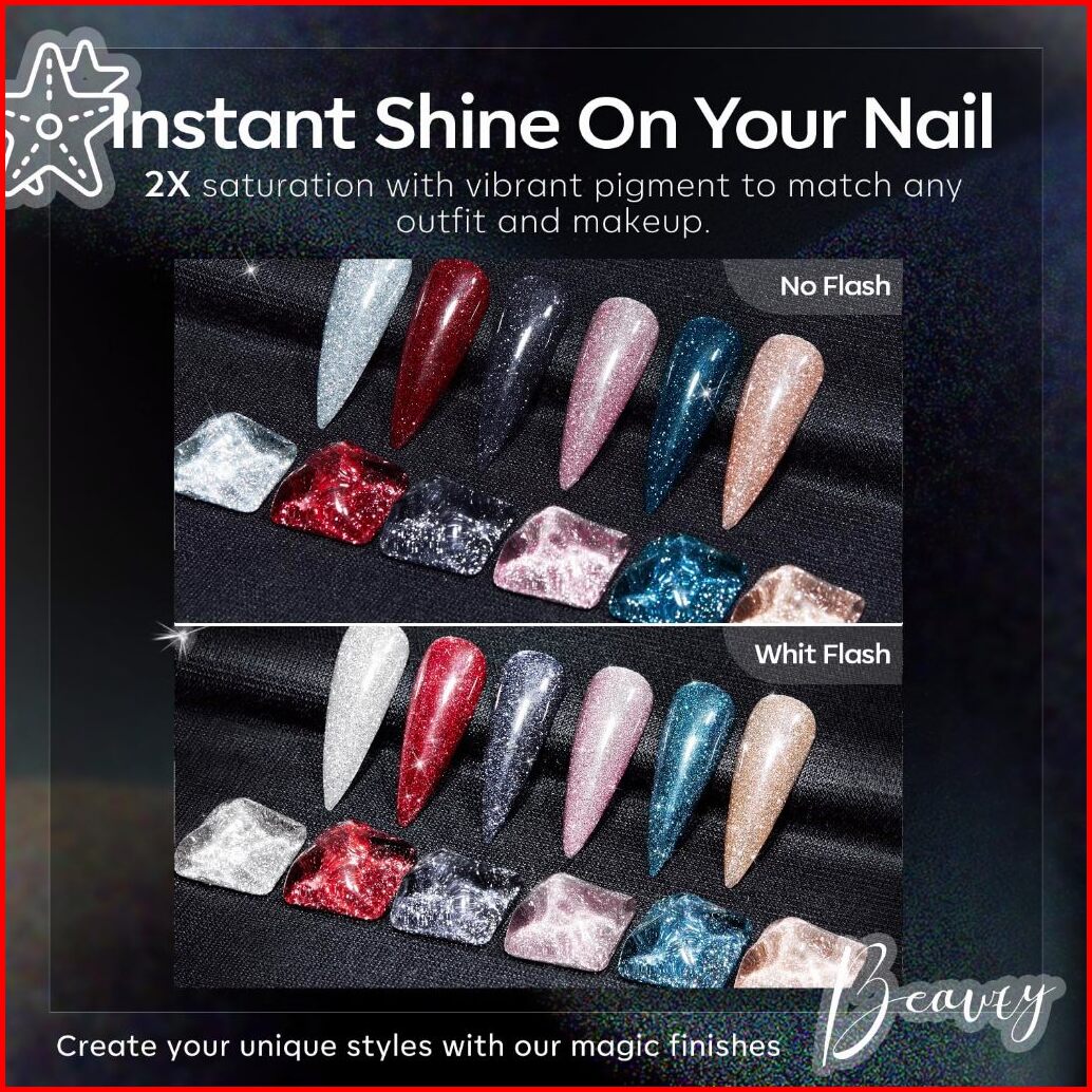 Modelones Reflektif Glitter Gel Nail Set Polandia 6 Warna Pink Red Silver Holographic Gel Polish Kit Led Soak Off Nail P