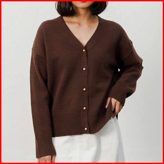 This Is April Baju Atasan Outer Rajut Wanita Lengan Panjang Elly Cardigan Dark Brown 60022500