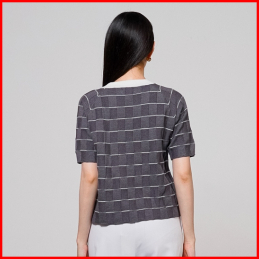 This Is April Atasan Baju Rajut Wanita Lengan Pendek Knitwear Vinny Top Grey Dan White