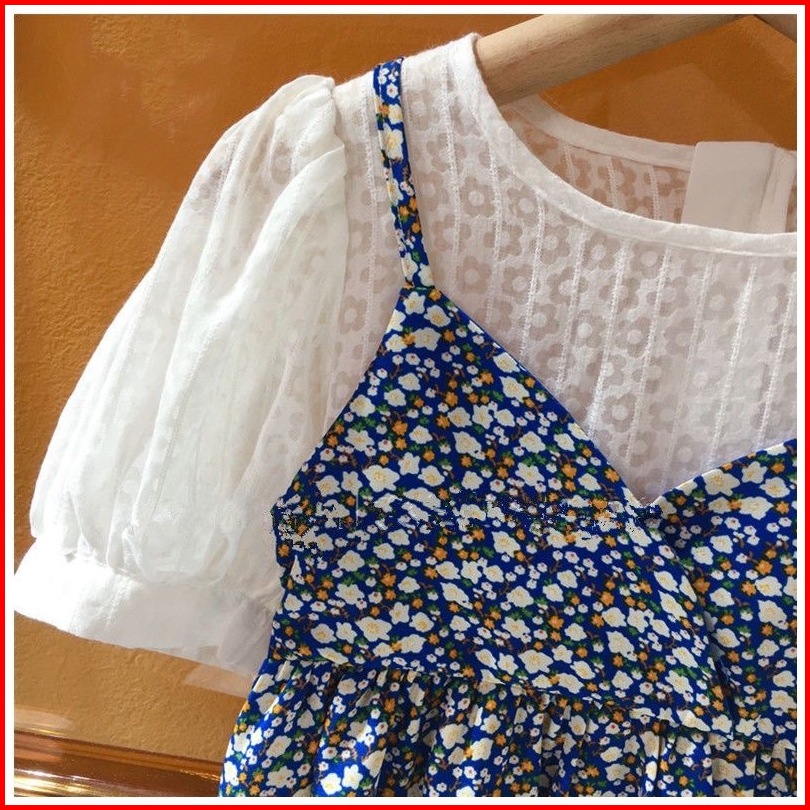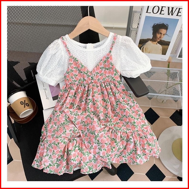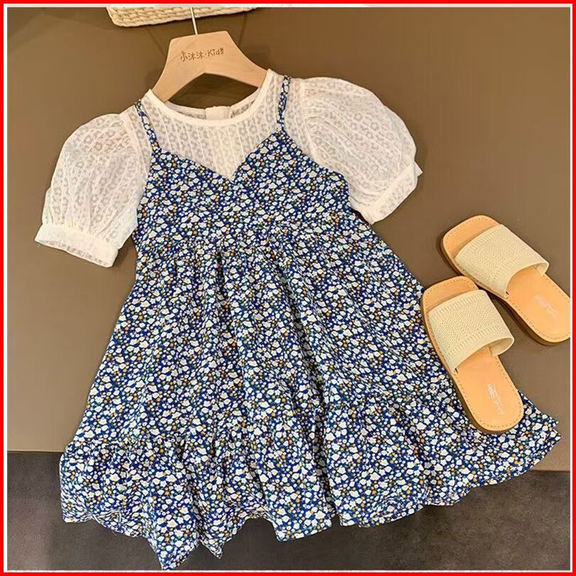 Princess Kesli 2-11 Tahun Gaun Bunga Anak Perempuan 2025 Rok Suspender Tipis Musim Panas Baru Rok Dua Potong Palsu Sifon