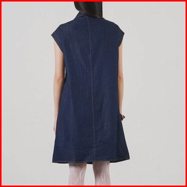 This Is April Gaun Midi Jeans Wanita Tanpa Lengan Feminin Evian Dress Denim C7000300