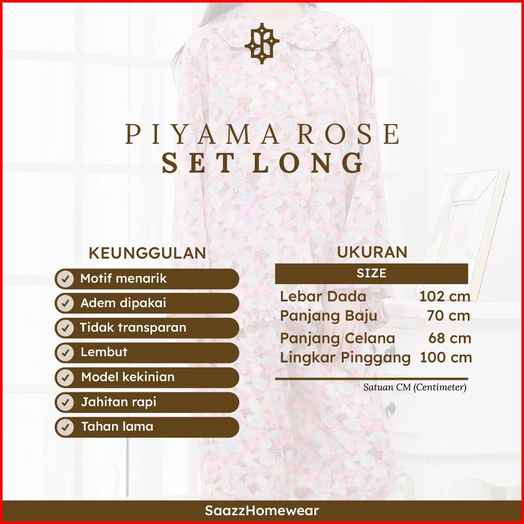 Saazz Piyama Rose Set Long Pajamas Tidur Wanita Sehari Hari Kekinian