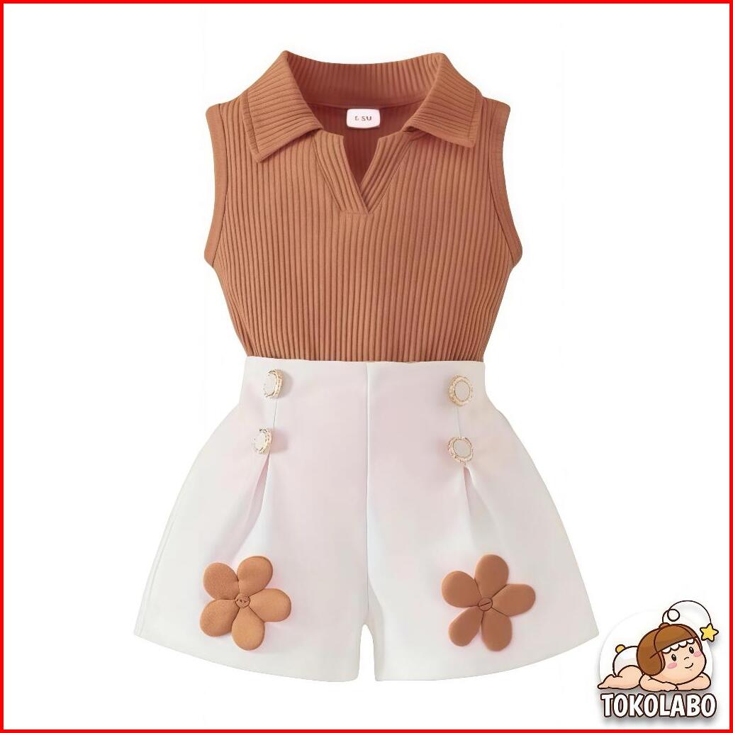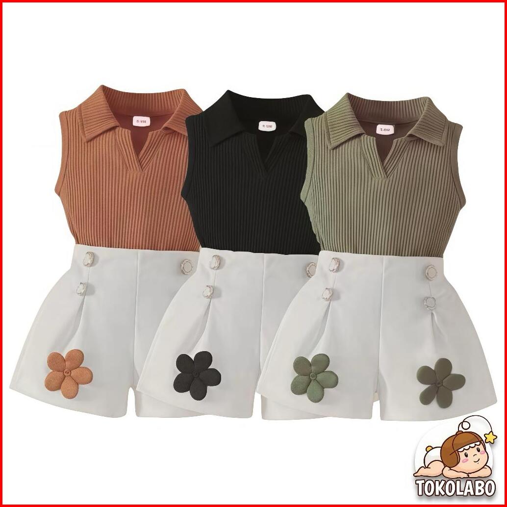 Tokolabo - Setelan Anak Perempuan Korea Style 1-5 Tahun Baju Tanpa Lengan Atasan Rib Dan Rok Bunga