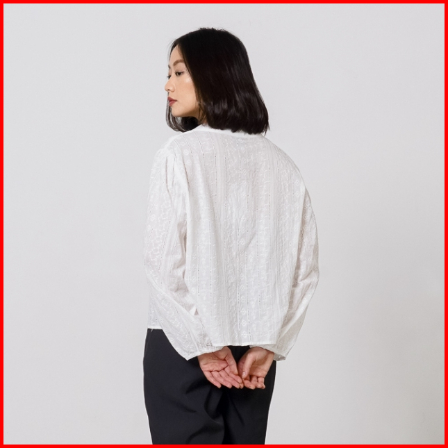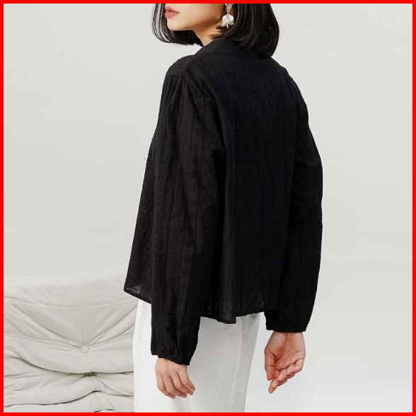 This Is April Blouse Wanita Lengan Panjang Crochet Flora Top Black Dan White Restock