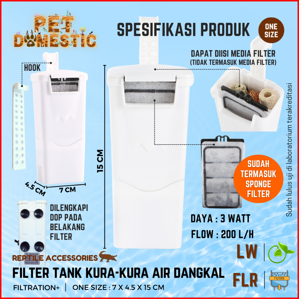 Mesin Filter Turtle Tank Low Water Pompa Air Dangkal Aquarium Akuarium Kandang Tempat Ember Kura Kura Brazil