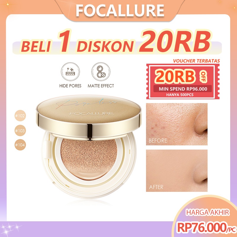 FOCALLURE #GoldenAge Full Coverage BB Cushion Poreless Matte Foundation Waterproof Face Makeup