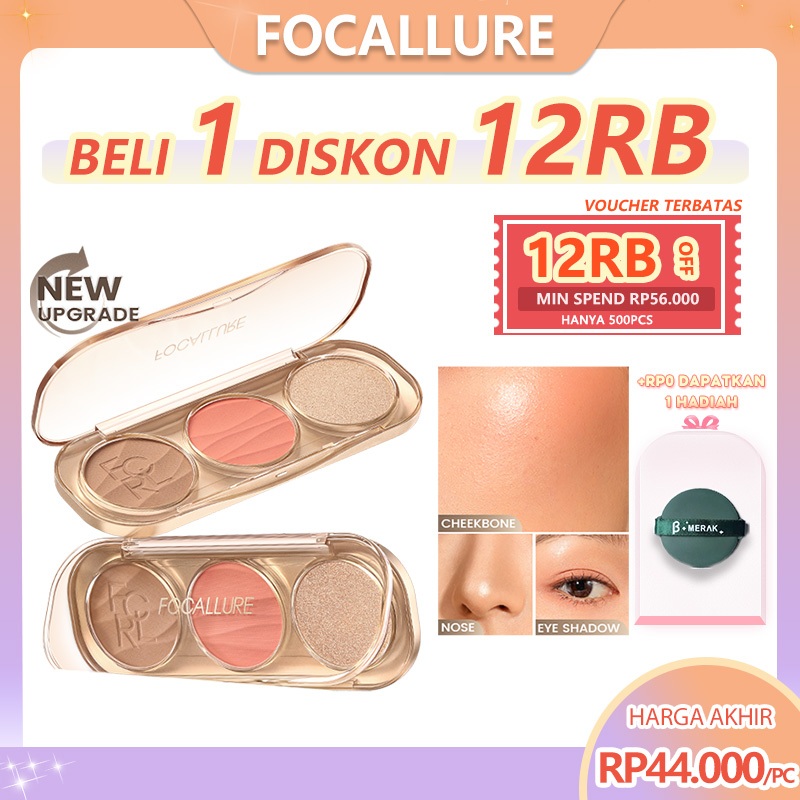 FOCALLURE Pro-Sculpt 3-in-1 Multi-Use Facial Shaping Palette Highlighter & Contour & Blush Do-It-All Upgrade Ultra-Pigmented 3D