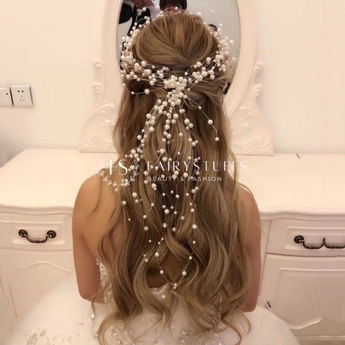 Hairpiece Terjun Mutiara Aksesoris Rambut Pesta Mahkota Bandana