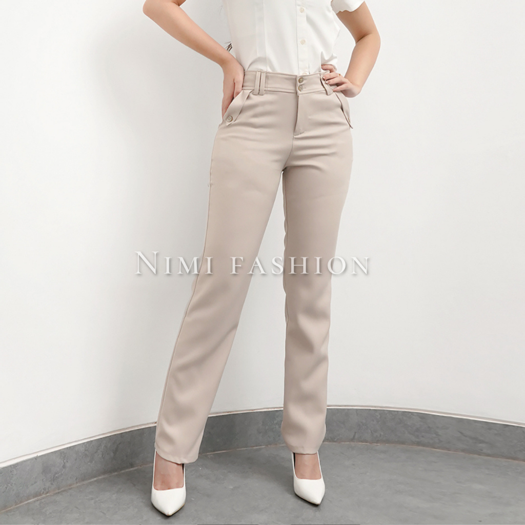 NIMI - Celana Kerja Kantor Reguler Formal Cream Pinggang Kancing Resleting Wanita