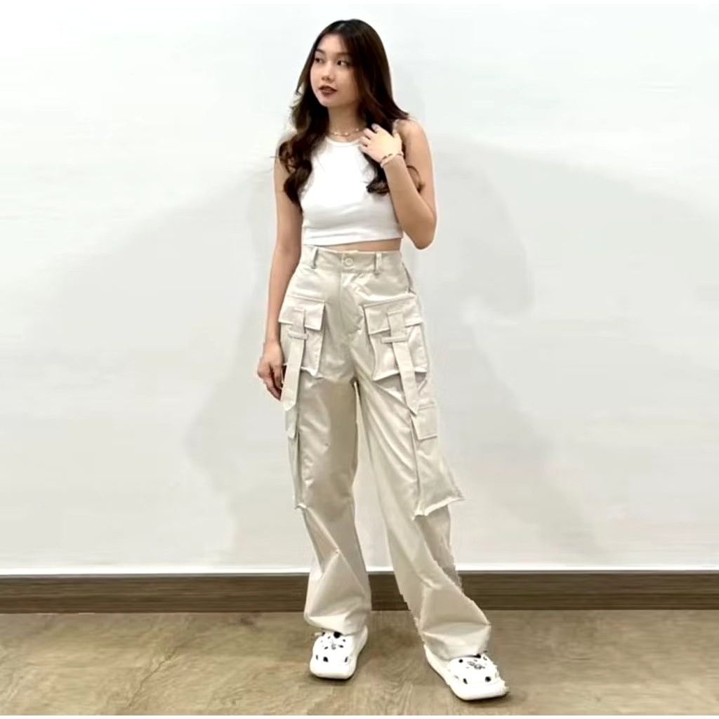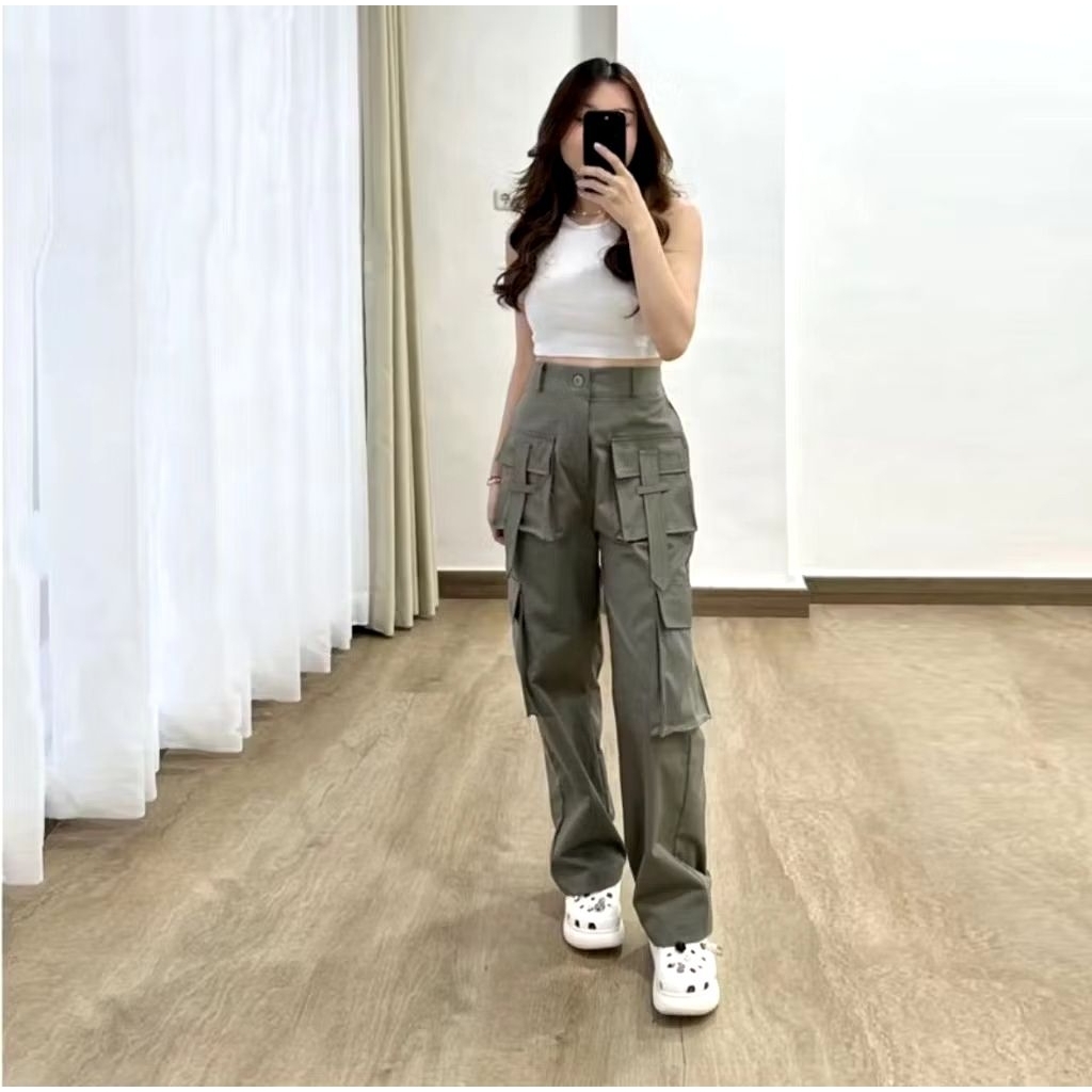 Yura Cargo Wanita Cargo Pant Pocket Celana Kargo Wanita Casual