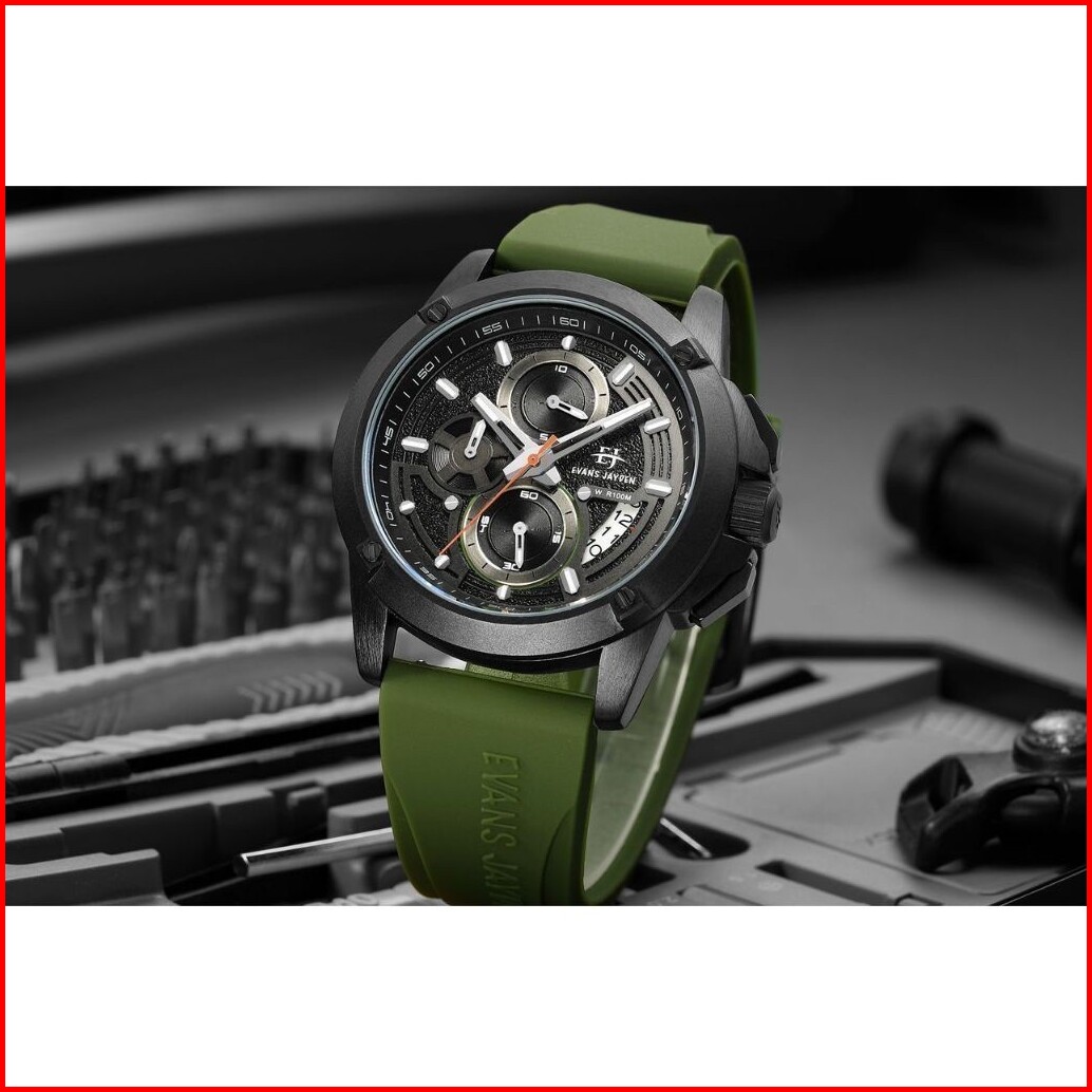 Diskon Evans Jayden Jam Tangan Pria 9551 Rubber Silicon Kaca Sapphire Chronograph Water Resistant 10 Atm