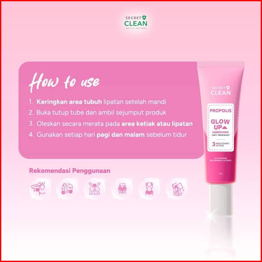 Ready Siap Kirim Secret Clean Propolis Glow Up Underarm Anti Perspirant 30gr Deodorant Brightening Cream Halal Ketiak Se