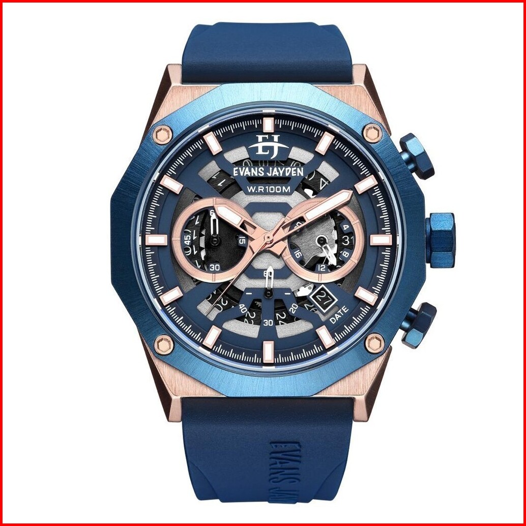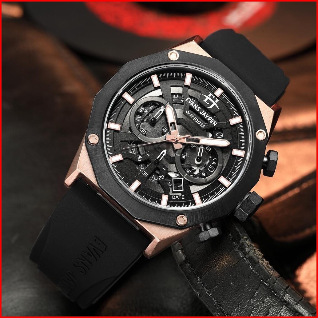 Diskon Evans Jayden Jam Tangan Pria 9583 Rubber Kaca Safir Chrono 10 Atm