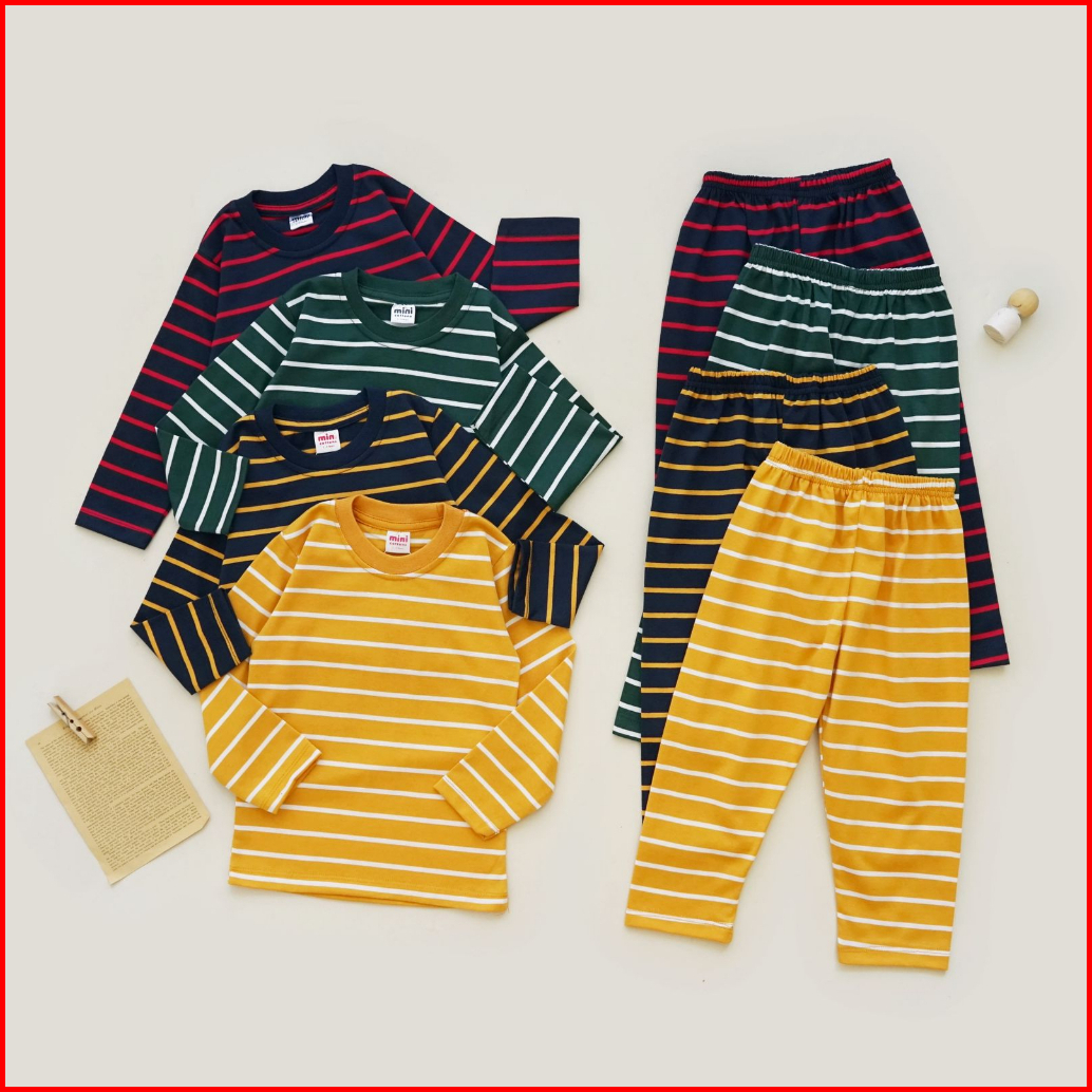Mini Cottons Piyama Anak Salur Setelan Baju Tidur Anak Stripe Navy Mustard 1-12 Tahun